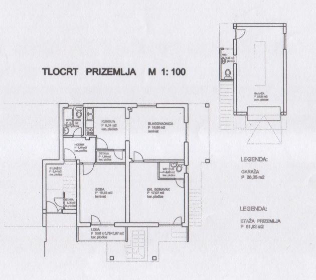 Mirna lokacija, izvan glavne ulice, vlastiti ulaz, veliko dvorište(220)kvadrata sa garazom(444/2 )stojna kuca(441/1)Vlasnišvo uredno-gradevna dozvola.