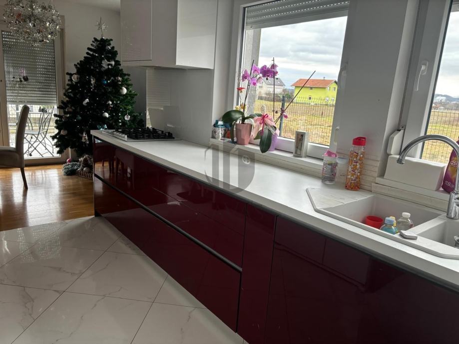 Sastoji od: dnevnog boravka, kuhinje, blagavaonice, kupaonice s wc-om i zasebnog wc-a, tri spavaće sobe ( jedna master soba s walk in garderoberom i dvije dječje ), balkona, terase i garaže.