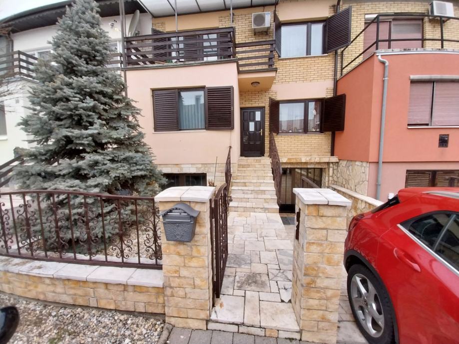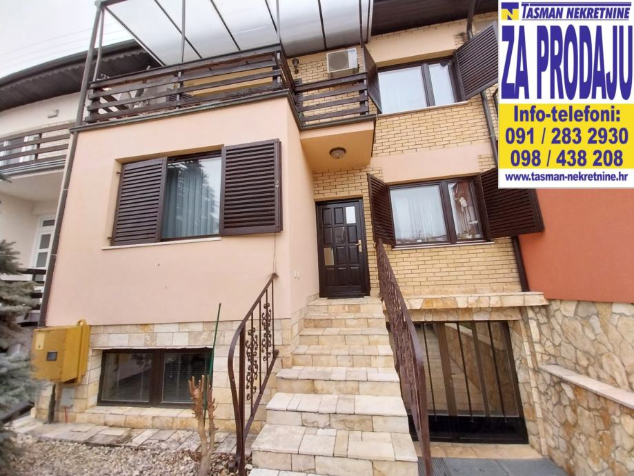 Ekskluzivno nudimo za prodaju prostranu šesterosobnu stambenu katnicu građenu 1989. godine, adaptirana 2019. godine sa extra prostranom natkrivenom terasom sa zidanim roštiljem, prostranom garažom, parkingom ispred kuće manjim dvorištem. Kuća se nalazi na atraktivnoj I extra mirnoj stambenoj lokaciji Žumberačka br.28, Osijek. Parcela na kojoj se kuća nalazi ima površinu od 225 m2. Kuća se prostire na ukupno tri stambene etaže ukupne površini 225m2, Kuća se sastoji iz prve etaže podruma, druge etaže visokog prizemlja i treće etaže kata. Sve tri etaže povezane su centralnim stubištem od podruma do kata. Tavan kuće moguće je adaptirati u stambeni prostor. Prva etaža podrum kuće površine 75m2 sastoji se iz jedne prostorije u kojoj je mini teretana, druge prostorije u kojoj je sauna i kotlovnica, kupaonice, prostrane garaže za dva automobila, vešeraja i spremišta. Podrum ima pješački izlaz na dvorište. Druga etaža visokoprizemlje kuće površine 75m2 sastoji se iz extra prostranog dnevnog boravka sa izlazom na prostranu natkrivenu terasu povezanog sa blagovaonicom i kuhinjom, sobe, kupaonice sa garderobom i hodnika. Treća etaža kat kuće površine 75m2 sastoji se iz dvije spavaće i dvije dječje sobe, kupaonice i hodnika. Sobe ima ju izlaze na balkone. Kuća ima centralno plinsko grijanje/kotlovnica. Kuća je tvrdo građena 1989. godine, adaptirana 2019 godine, adaptacija je obuhvatila nove instalacije struje, nove instalacije vode, kanalizacije, nove sanitarije i keramika u kupaonicama, obrada zidova, kompletno nova aluminijska ograda na terasi i balkonima Kuća je redovito održavana u odličnom stanju, Kuću karakterizira tvrda gradnja beton, čelik opeka, crijep. Kuća ima prostranu garažu za dva vozila u garaži je ugrađen nepovratni ventil sa bunarom I automatskom pompom tako da je kvalitetno osiguran od oborinskih voda. Ispred kuće nalazi se parking.