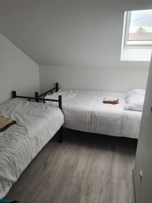 Iznajmljujemo kuću za radnike. Sastoji se od 4 dvokrevetne sobe, dva kupatila, dnevne sobe i kuhinje. Sve sobe su namještene i klimatizirane. Grijanje je podno. Mjesta za parkiranje su uređena ispred kuće i u dvorištu. Cijena je 200 eura po krevetu. U cijenu su uključene režije, čista posteljina i ručnici svaka 2 tjedna.