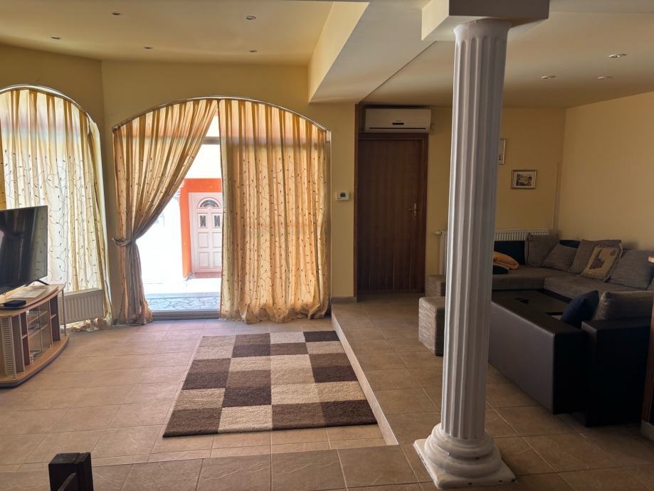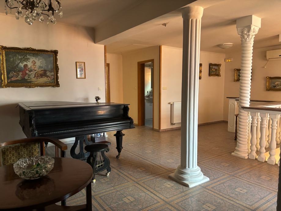 Prizemlje se sastoji od prostranog dnevnog boravka povezanog s kuhinjom i blagovaonicom te izlazom na terasu, 2 spavaće sobe, prostorije za garderobu i kupaonice s hidromasažnim tušem. Na katu se nalaze 2 spavaće sobe, kupaonica s hidromasažnom kadom i tušem, prostrani boravak s izlazom na natkriveni balkon, 2 ostave, predsoblje, teretana s izlazom na dvorište iza kuće i prostorija za ured.