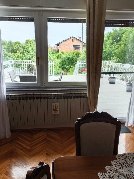 Prodajem kuću u Osijeku, mogućnost zamjene za stan uz vašu nadoplatu) posjedujem vlasnički list i kuća i objekti su legalizirani, u kući nisu potrebna nikakva ulaganja ,kuća je potpuno namještena i prodaje se sa namještajem , centralno grijanje na plin, stavljen novi krov,nova fasada na kući , u prizemlju velika dnevna soba , trpezarija i kuhinja , dva nova kupatila, parket u cijeloj kući , ispod cijele kuće podrum ( uređen tako da se može i stanovati u njemu, 84,5 kvadratnih metara) u prizemlju kuće poslovni prostor ( iznajmljuje se frizerski salon) u dvorištu velika garaža iz koje se ulazi direktno u kuću , velika terasa vidljiva na fotografijama.