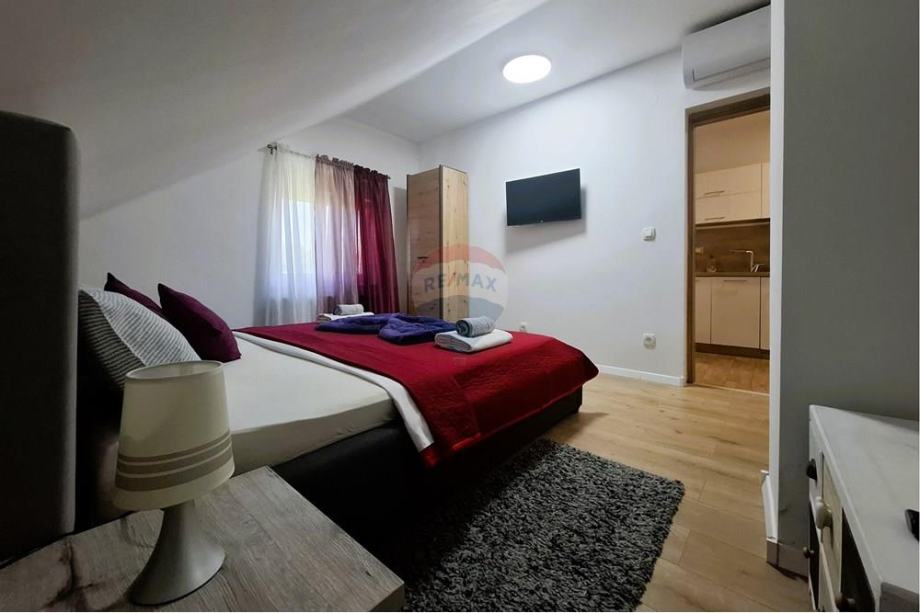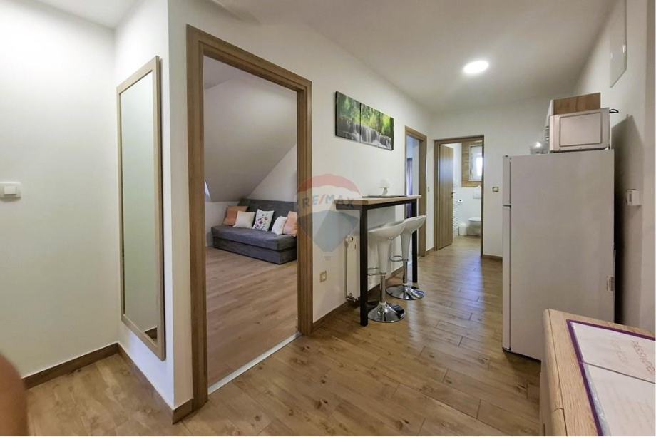 Objekt se prostire na ukupno 1160 četvornih metara i uključuje dvije etaže, na svakoj su po dva apartmana s balkonima, s kojih se pruža prekrasan pogled na zeleni vrt i prirodni okoliš. Obzirom na odličnu lokaciju, apartmani se iznajmljuju tijekom cijele godine, pružajući odličnu priliku za investiciju. Ulaz u parking Nacionalnog parka Plitvičkih jezera udaljen je 18 km, do prekrasnih Rastoka u Slunju može se doći za 15 minuta, a dodatnu vrijednost donose privatni vrt, dovoljan broj parkirnih mjesta, adrenalinskog park i restoran udaljeni su svega 50 m, u neposrednoj blizini je i ranč s konjima, te trgovina.