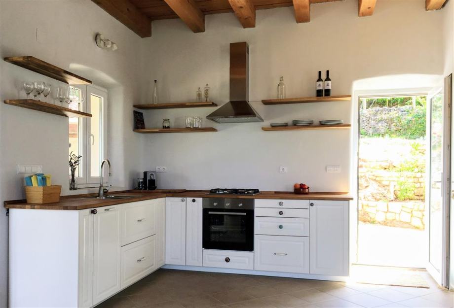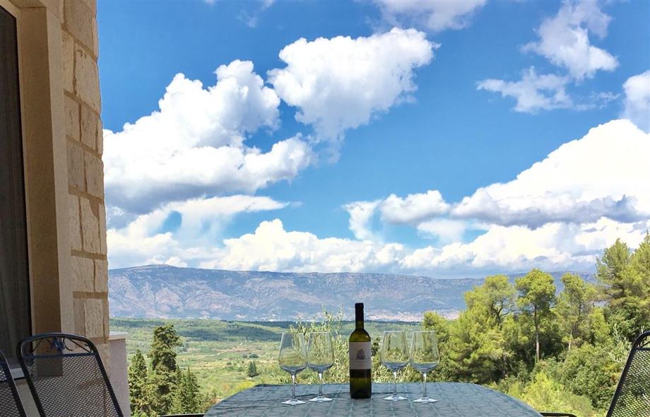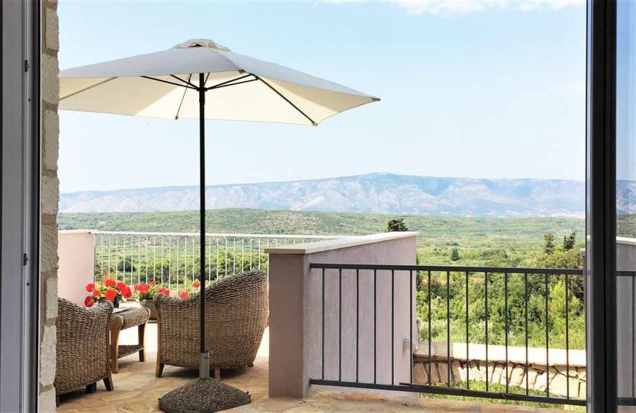 Potpuno nova kuća na prekrasnoj lokaciji cca 4 km od mora, na sjever-zapadnoj strani otoka Hvara, površine cca 120 m2 neto, koja se sastoji od velikog otvorenog prostora s kuhinjom, blagovaonicom i dnevnim boravkom i kupaonice, sa izlazom na dvije terase u prizemlju, te dvije spavaće sobe, radne sobe, kupaonice i balkona na katu, ljetne kuhinje u stražnjem vrtu i garaže uz prilaznu cestu, sve potpuno namješteno i opremljeno, s mnogo svjetla, pogled prema otoku Braču, kompletna infrastruktura, idealno za odmor, mogućnost bazena.
