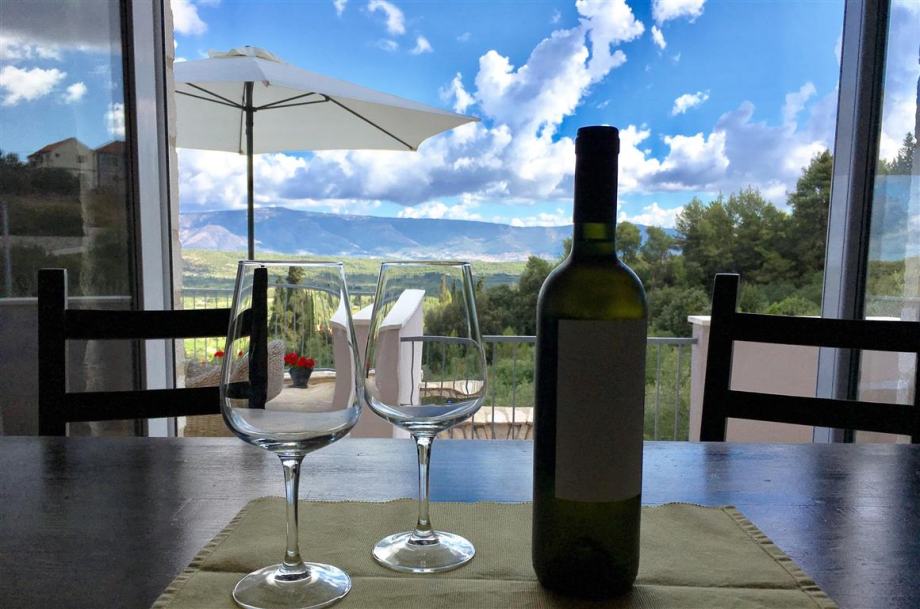 A recently built house in a beautiful and quiet setting on the north-west side of the island, with fantastic views over the village toward the island of Brac, with a total surface of 120 sqm net, designed as a cozy holiday home with spacious outdoor area and lot of light, consisted of the open plan room on the ground floor comprising kitchen, dining and living area, bathroom and two terraces, and master bedroom with a balcony, bedroom, 2nd bathroom and office that can be turned into a 3rd bedroom, tastefully furnished, well maintained garden with a beautiful summer kitchen, garage and parking lot, complete infrastructure, usage permit.