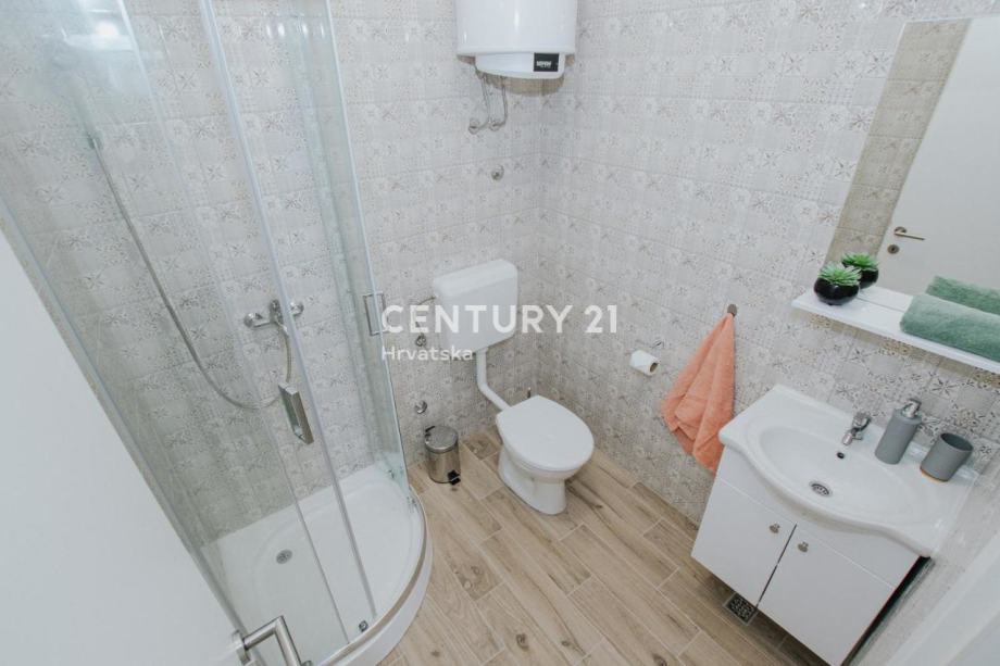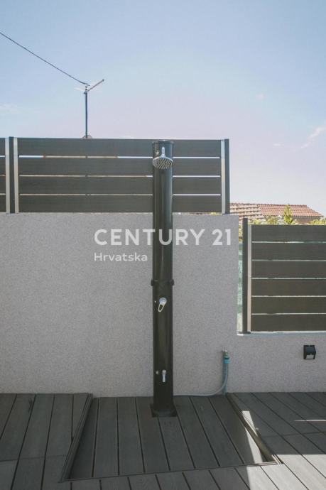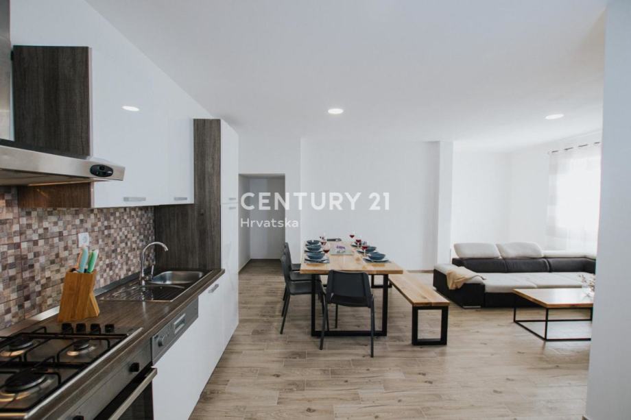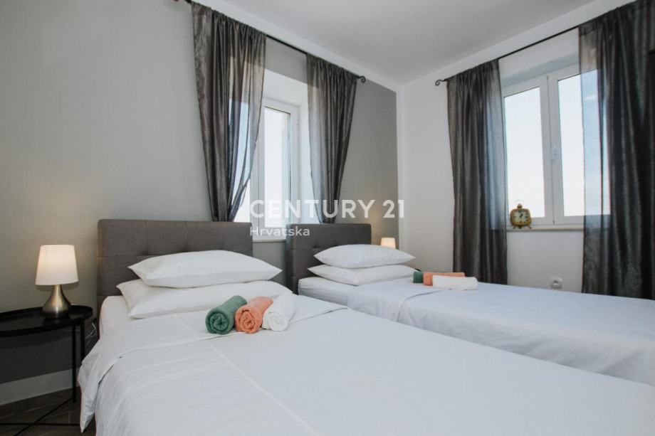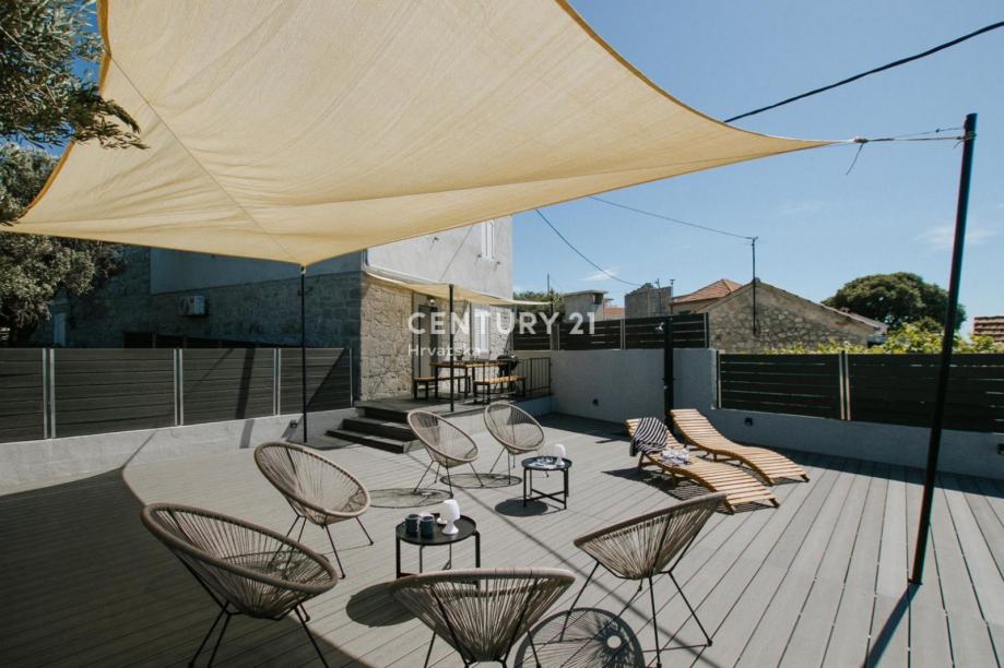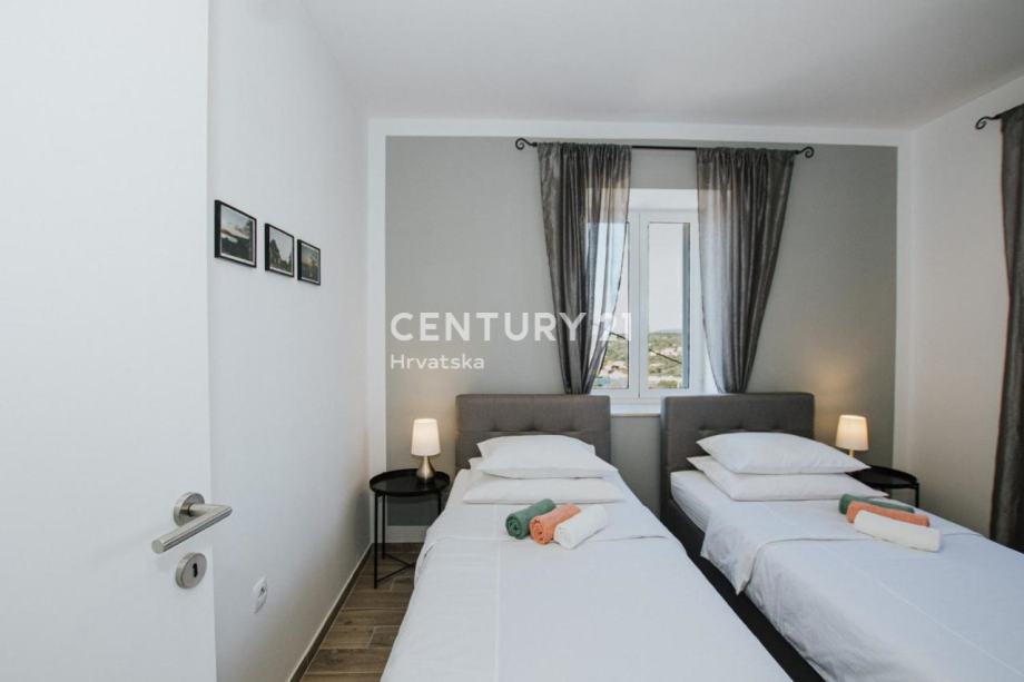 Kuća se sastoji od dvije etaže; na prvoj etaži su prostrani dnevni boravak i opremljena kuhinja s kupaonicom, a na drugoj etaži su tri spavaće sobe i kupaonica. Ispred kuće se nalazi veliko dvorište za opuštanje na suncu,a ima i dovoljno okućnice za uživanje. Postoji mogućnost vrtlarenja, sadnje mediteranskih biljki ili izgradnje bazena.