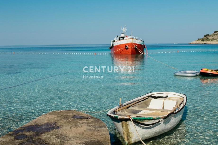 Kuća je udaljena 350m od poznate plaže Vela Rine. To znači da budućeg vlasnika dijeli 5 minuta hoda od opuštanja i uživanja na plaži. Jadransko more poznato je po svojoj čistoći,bogatom i bistrom podmorju a idealan primjer tog prizora je plaža Vela Rina. Prelijepa pješćana plaža je raj za oči u kojem uživate gledati bistrinu plavetnila u beskraj, a još više uživate u zaronu te dubine. More na ovom otoku je toliko čisto da pri ronjenju ne znate koliko ste udaljeni do dna. Ova kuća čeka novog vlasnika.