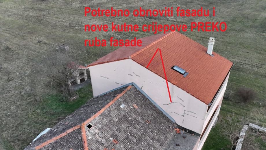 Kuća ima stiropor oblogu od 5 cm i ispucali završni sloj fasade te treba zamjenu oplošja fasade za funkciju vodonepropusnosti fasade i oko otvora.