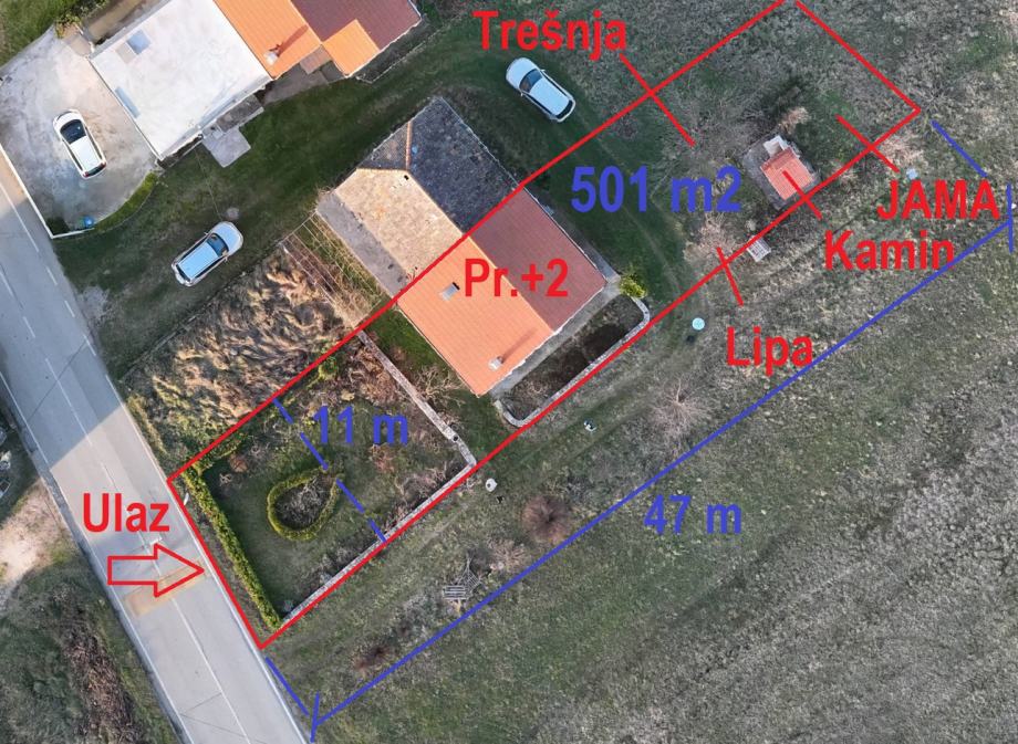 Proveden je geodetski elaborat evidentiranja međa i upisa kuće.
