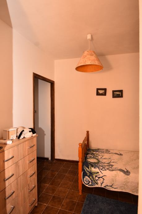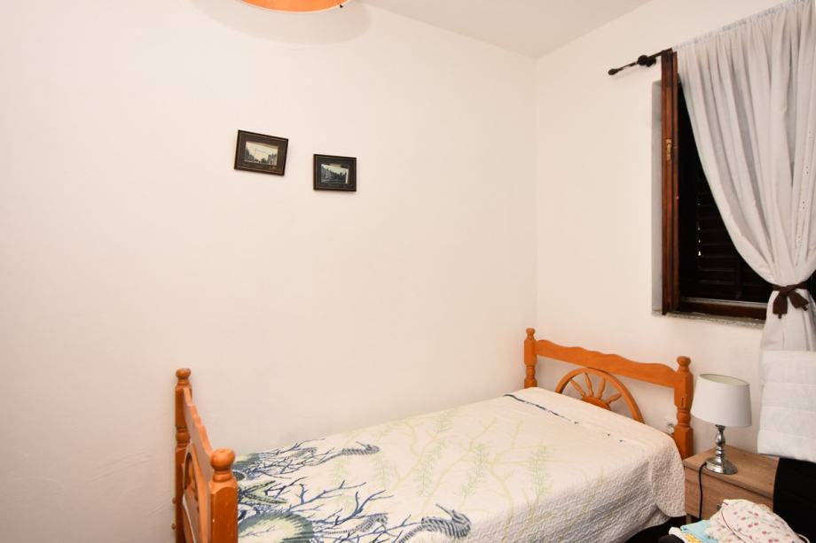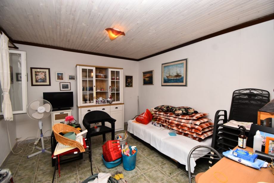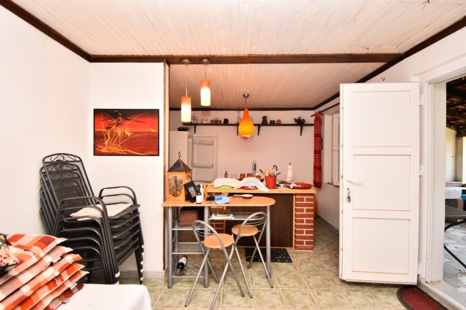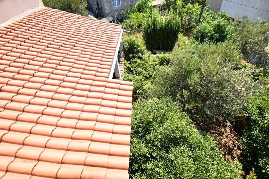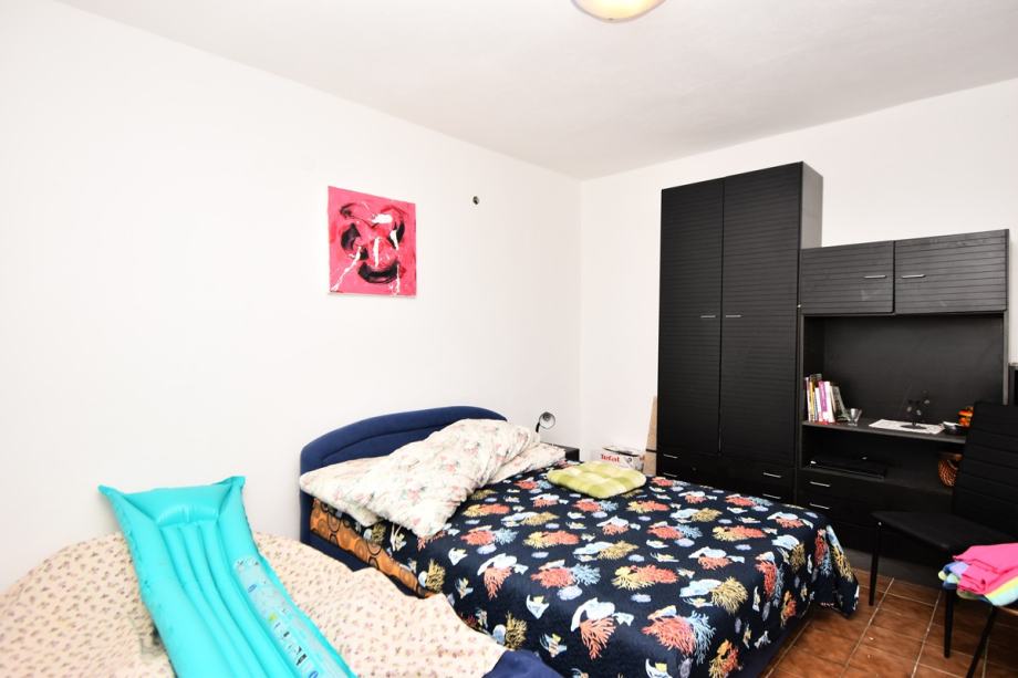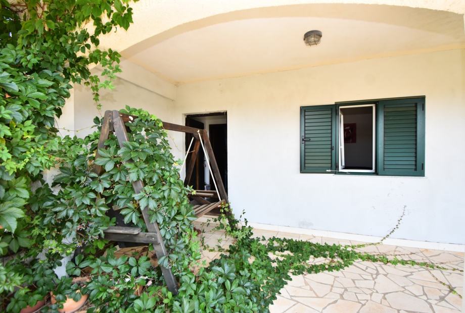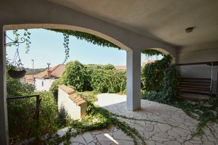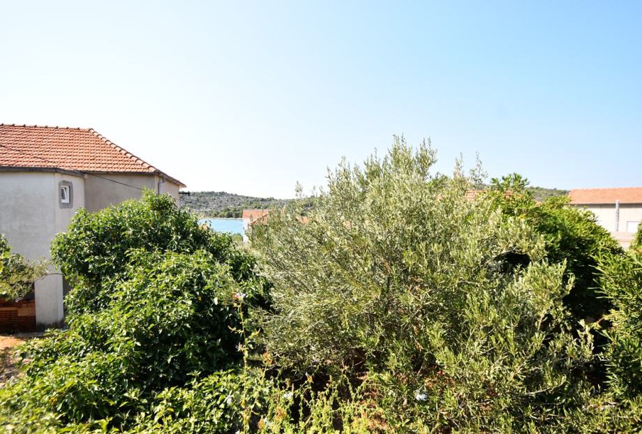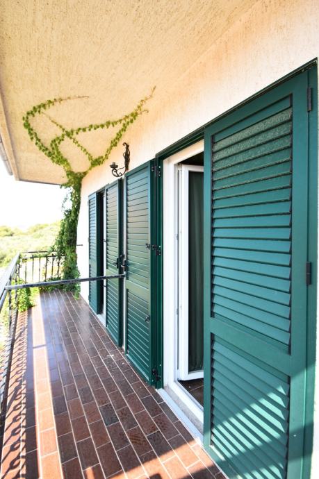 Na maloj uzvisini, s pogledom na more, i parceli površine 226 m2, nalazi se odmah useljiva kuća s dva stana. Na prizemnoj etaži se u jednom dijelu nalazi spavaća soba i kupaonica s terasom ispred, a u drugom dijelu kuhinja i dnevni boravak s lijepom nastrešnicom ispred, s mnogo prostora za vanjsku garnituru i opuštena druženja. Privatnost nudi i vrt te živica koja omeđuje kuću. U stražnjem, lako dostupnom dijelu, se nalazi roštilj. Vanjske stepenice vode na gornju etažu gdje su tri spavaće sobe, dvije kupaonice, kuhinja, blagovaonica te terasa s predivnim pogledom na more.