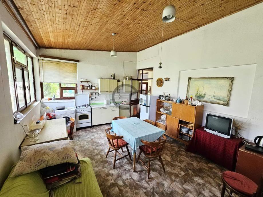 Kuća na otoku Zlarinu predstavlja izuzetnu priliku za one koji žele uživati u mirnom životu, s pogledom na more i neposrednom blizinom šljunčane plaže. Smještena u drugom redu, kuća nudi privatnost i tišinu, a ujedno je dovoljno blizu plaže da možete uživati u svim prednostima obale.Stambena površina kuće iznosi 100,4 m² (uključujući loggiu), dok vrtni prostor od 220 m² nudi dodatne mogućnosti za opuštanje i uživanje na otvorenom. Kuća se sastoji od dnevnog boravka, kuhinje, dvije spavaće sobe, loggie, hodnika i kupaonice, a unutrašnji raspored prostora može se prilagoditi prema željama budućeg vlasnika, što omogućava stvaranje prostora prema osobnim potrebama.Kuća je useljiva, no zahtijeva renovaciju, čime pruža priliku da je transformirate u svoj idealni dom. Kompletno je spojena na komunalne priključke i septičku jamu.Također, kuća ima čisto vlasništvo 1/1, bez opterećenja, a posjeduje i pravomoćno rješenje o izvedenom stanju (legalizacija).Pješačka udaljenost do plaže iznosi manje od 80 metara.Kontakt agent: jaksa@dalmatianhome.com, +385912545962