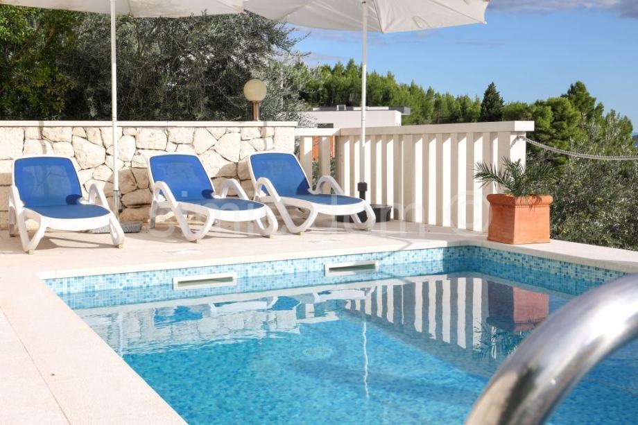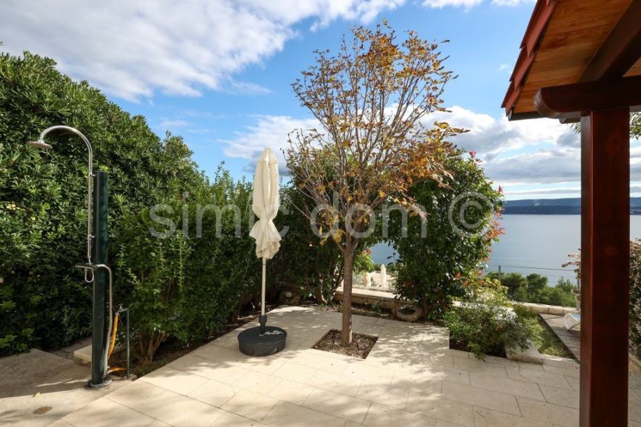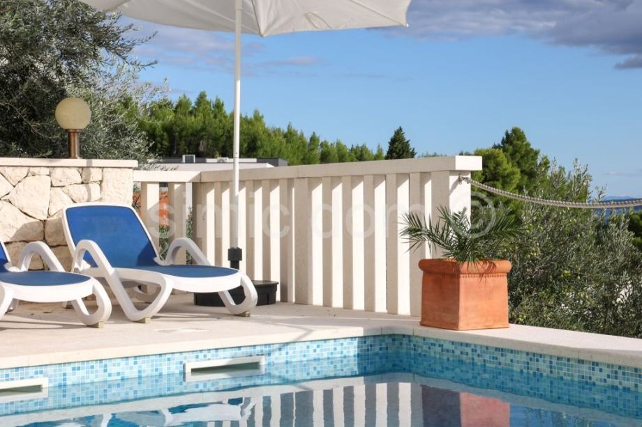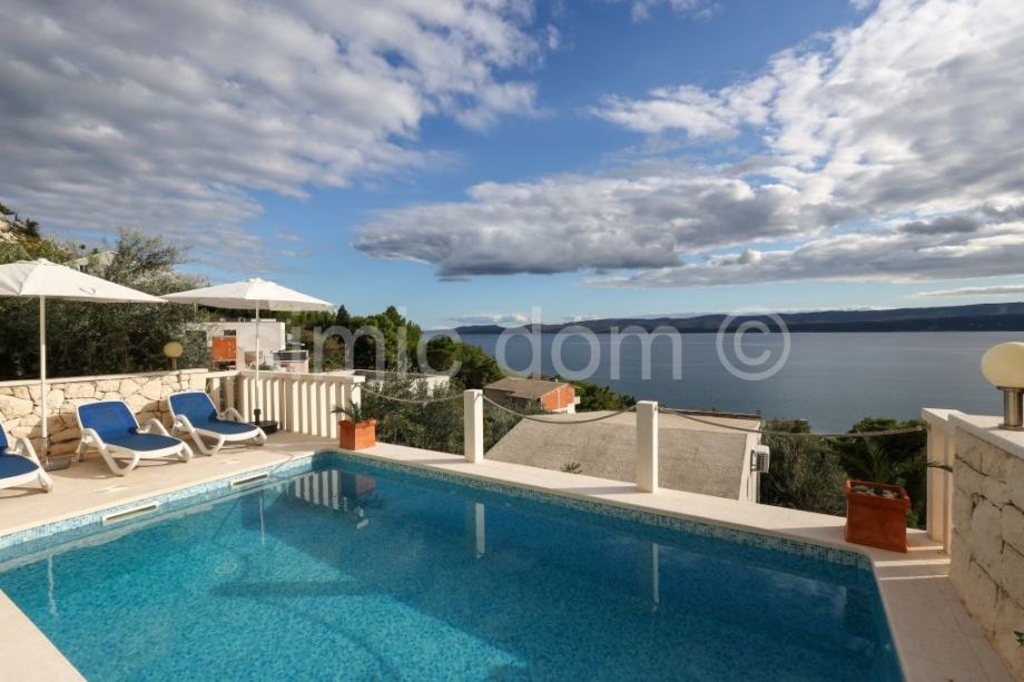 Posredujemo u prodaji prekrasne apartmanske kuće na vrlo mirnoj lokaciji u manjem mjestu u blizini Omiša. Kuća se prostire etažama prizemlja i prvog kata, a ukupna joj je neto površina 180m2. U prizemlju su smješteni pomoćna prostorija, spremište, nadstrešnica te stan od dvije spavaće sobe, kupaonice, kuhinje, dnevnog boravka s blagovaonicom te impresivnog trijema, idealnog za mirne ljetne večeri. Na katu se nalazi također dvosoban stan s dvije kupaonice s čijeg se balkona pruža nevjerojatan, otvoren pogled na more, Brač i cijelo okolno područje. Posebna je prednost ove lijepe nekretnine pažljivo održavana okućnica s prostranim bazenom, sunčališnim prostorom, roštiljem te vanjskim parkirnim mjestima. Blizina sadržaja u obližnjem Omišu, prekrasan pogled, visoka kvaliteta same nekretnine te mir lokacije, jamstvo su niza mogućnosti iskoristivosti ili za najam ili za mirnu obiteljsku destinaciju. Vlasništvo uredno.