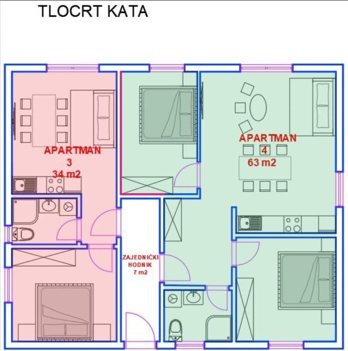 Sastoji se od 4 apartmana, 8 soba, 4 kupaonice.