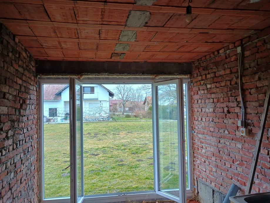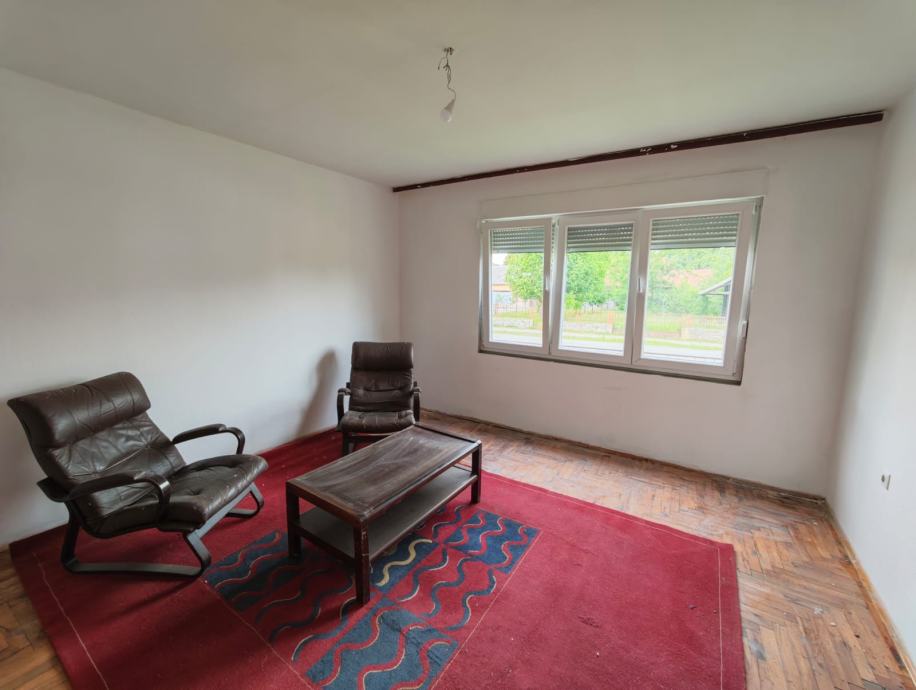 Prodajemo kuću površine 82 m2 s pomoćnom zgradom (garažom i spremištem) površine 32 m2 i gospodarske zgrade (staja, uvoz i sjenik) površine 119 m2. Kući pripada dvorište površine 2055 m2 u kojem je temelj za izgradnju dodatne kuće te voćnjak.