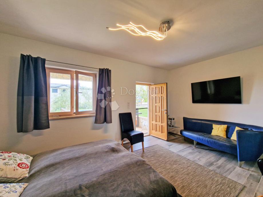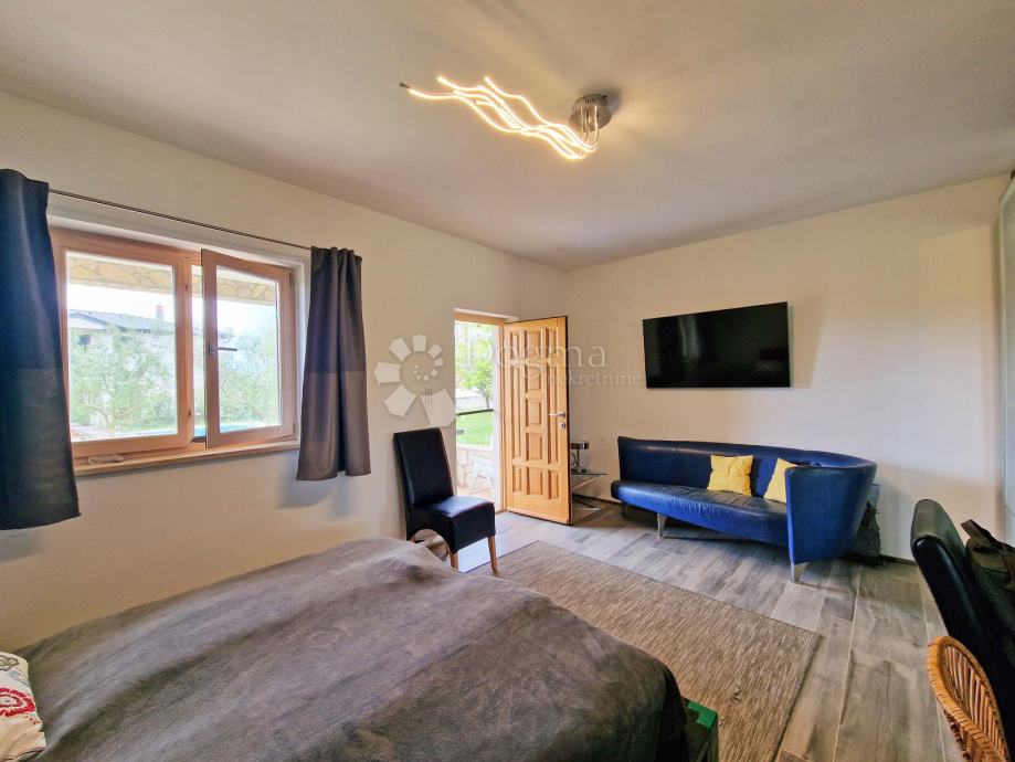 Kuća se prodaje potpuno namještena, svaka prostorija opremljena je klima uređajem, televizijom i potrebnim namještajem.