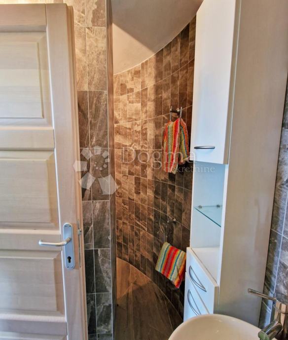 Unutarnjim stepeništem dolazimo na 1. kat koji se sastoji od 2 spavaće sobe, od kojih jedna ima vlastitu kupaonicu a druga veliku terasu s koje se pruža lijep pogled na more.