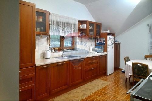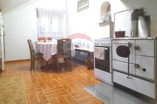 Kuća uključuje dnevni boravak, dvije spavaće sobe, dvije kupaone s wc-om, otvorenu galeriju koju možete koristiti prema vašim željama, kuhinju s blagovaonicom, jednu prostoriju uređenu za druženje na čiji se vanjski zid naslanja krušna peć, garažu, prostoriju koja se trenutno koristi kao kotlovnica, i drvarnicu pokraj kuće. U kući je provedeno centralno grijanje na lož ulje, a po potrebi može se zasebno koristiti i dvije peći na drva, vodovod je gradski, a za odvodnju se koristi eko septička jama. Postoji mogućnost i kupnje zemljišta uz kuću.