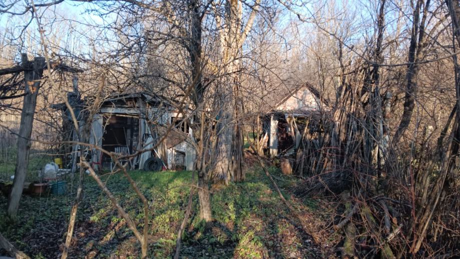 Stara hrastova kuća, cca 40 m2 na betonskim temeljima, na parceli on cca 3000 m2 sa voćnjakom (50ak voćaka), oranicom od 1000 m2, dvije šupe, drvarnica.