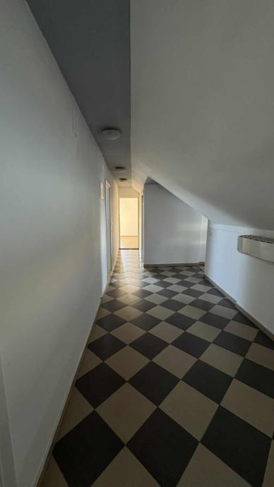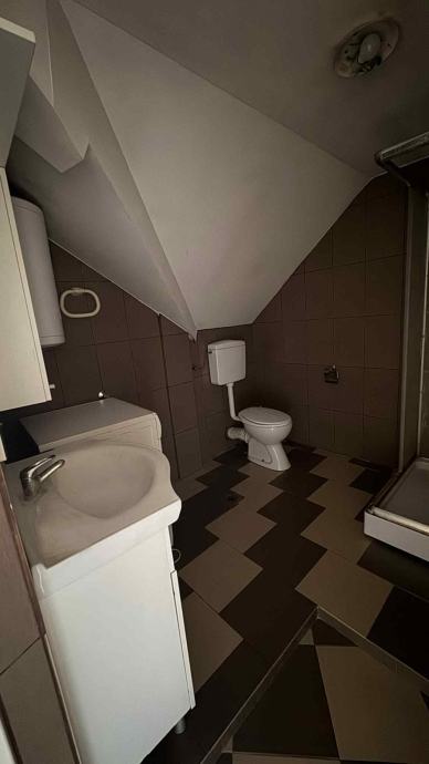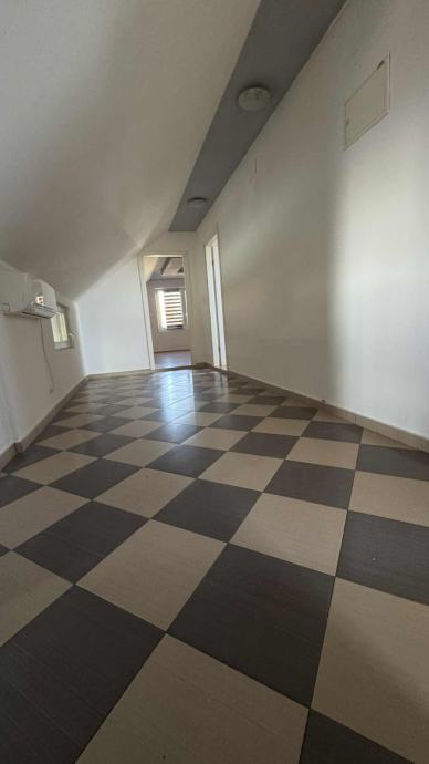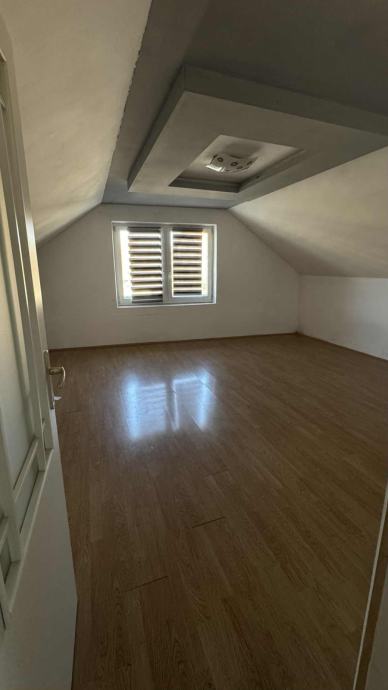 Na prvom katu kuće nalazi se stan koji se sastoji od dnevnog boravka, kuhinje, 3 spavaće sobe, kupaonice i hodnika. Stan je ukupne površine 130m2 i nenamješten. Kuća je kompletno renovirana 2014 godine.