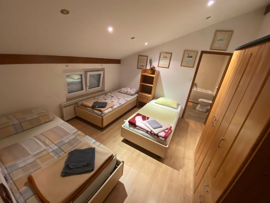 Svaki stan raspolaže s 4 sobe, a sobe su opremljene s više pojedinačnih kreveta - kako se i vidi na fotografijama, u sobama s parketom smješteno je po 3 do 4 ležaja uz ormar. Kuhinja je namještena i opremljena, s blagovaonskim stolom koji prima više osoba. U stanu se nalaze 2 kupaonice s WC-om i 2 zasebna WC-a. Svaki stan dolazi potpuno namješten i spreman za useljenje.