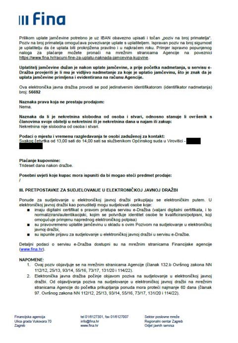 Oglas je poziv na javnu dražbu, detalji u fotografijama.