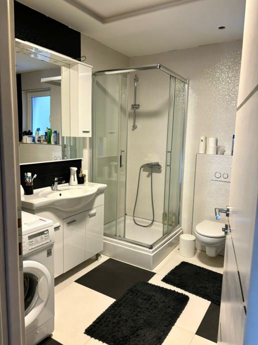 U prizemlju se nalazi prostrana garaža s automatskim vratima, kao i ostave i spremište. Stan na visokom prizemlju ima neto površinu od 50m2 i sastoji se od spavaće sobe, kuhinje, dnevnog boravka te kupaonice.