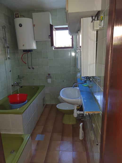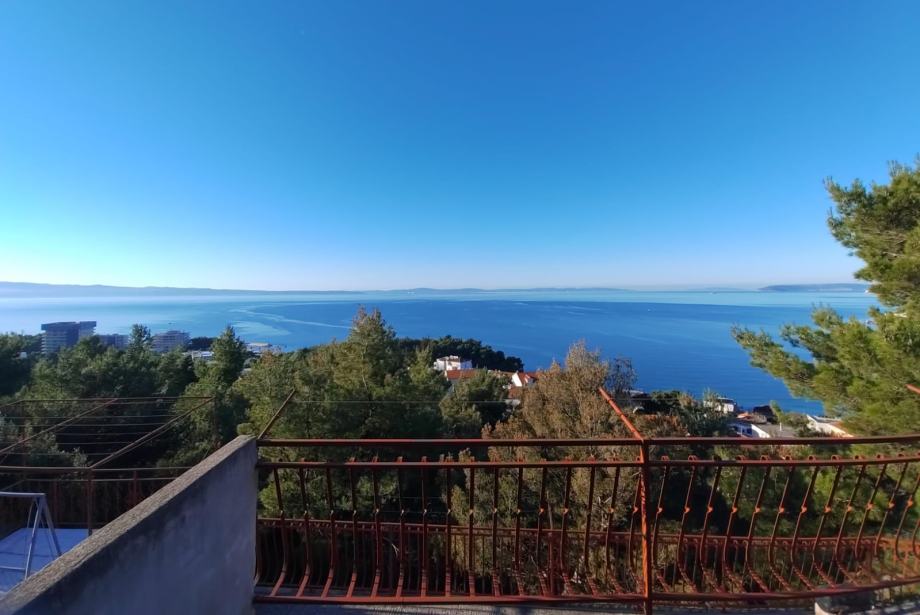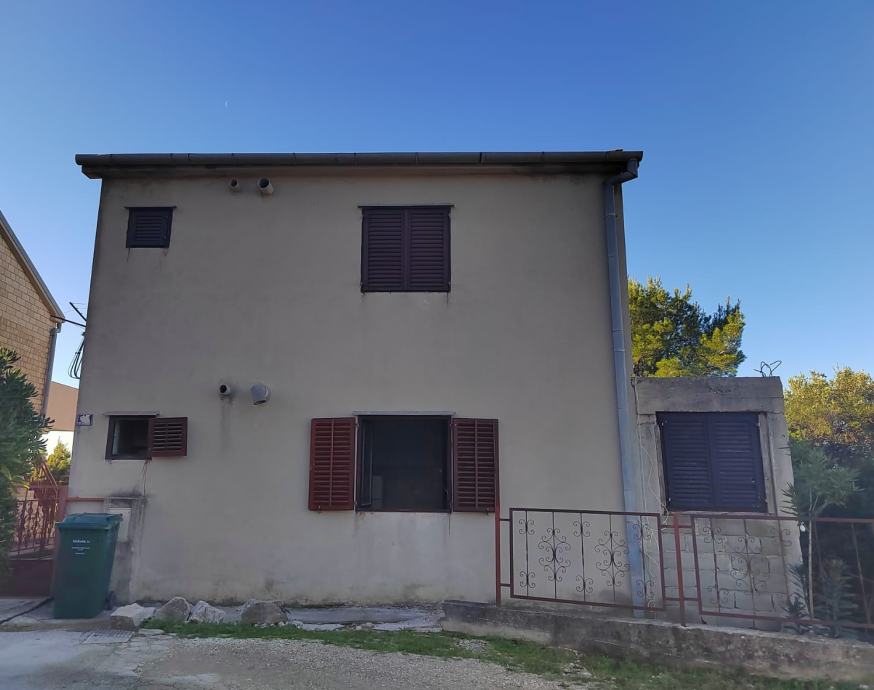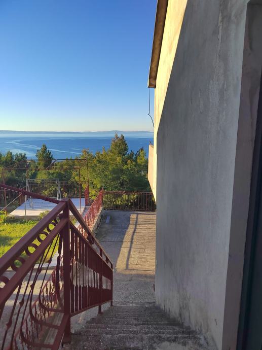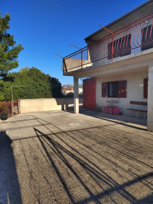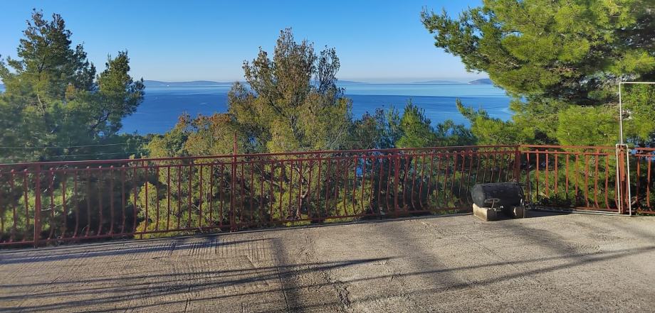 U prizemlju okućnicu većim dijelom čini prostrana betonirana terasa s predivnim pogledom na Brač.