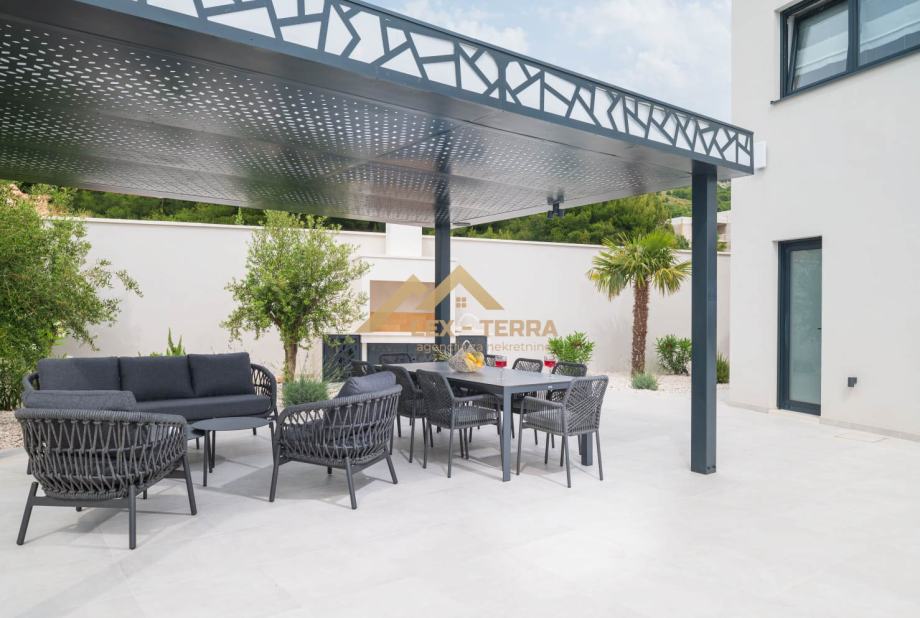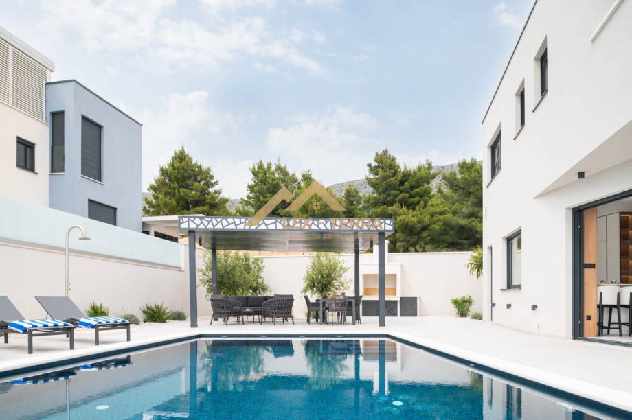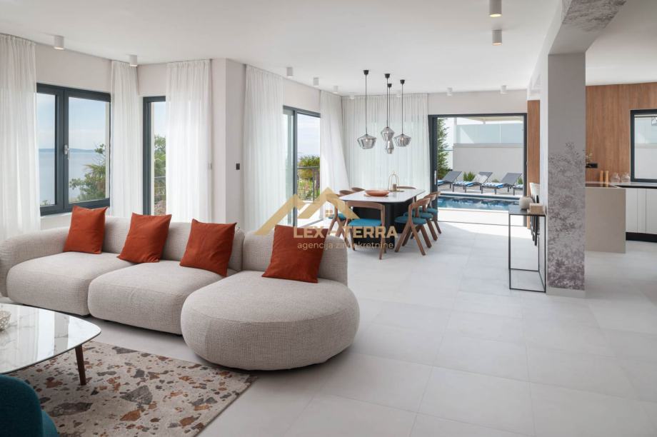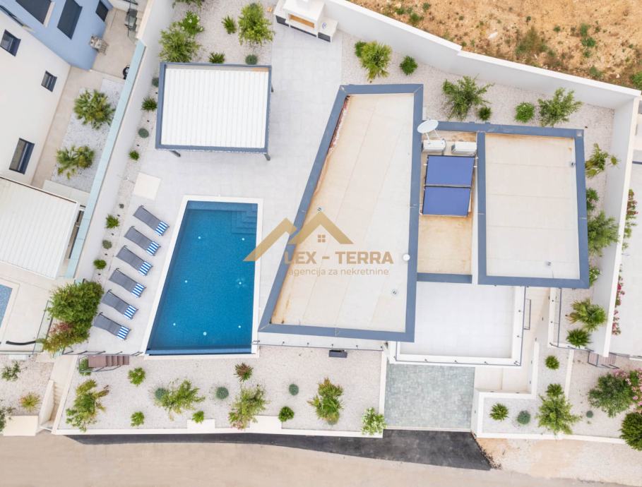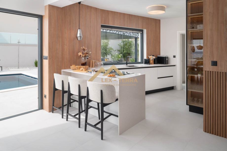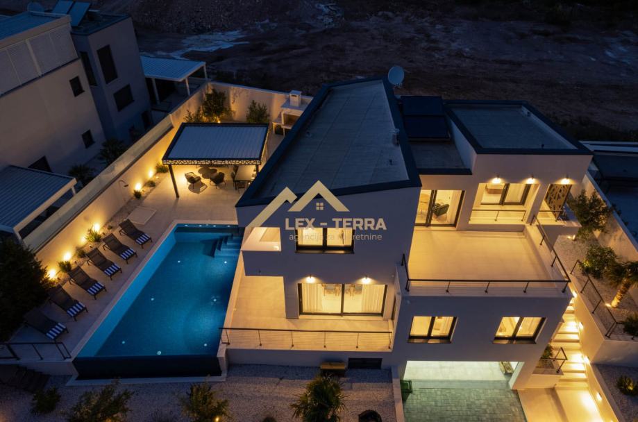 Dizajn vile potpisuje renomirani arhitektonski ured, a interijer je pomno osmišljen s naglaskom na luksuz i funkcionalnost. Vrhunska oprema uključuje podno grijanje, solarne panele, videonadzor i dizajnerski namještaj, čineći ovu nekretninu savršenim domom ili investicijom za najzahtjevnije kupce.