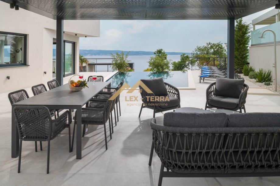 Na prodaju je novoizgrađena luksuzna vila na atraktivnoj i mirnoj lokaciji u Podstrani, s predivnim pogledom na more. Ova vrhunska nekretnina nudi savršen spoj suvremenog dizajna, premium materijala i udobnosti na najvišoj razini.