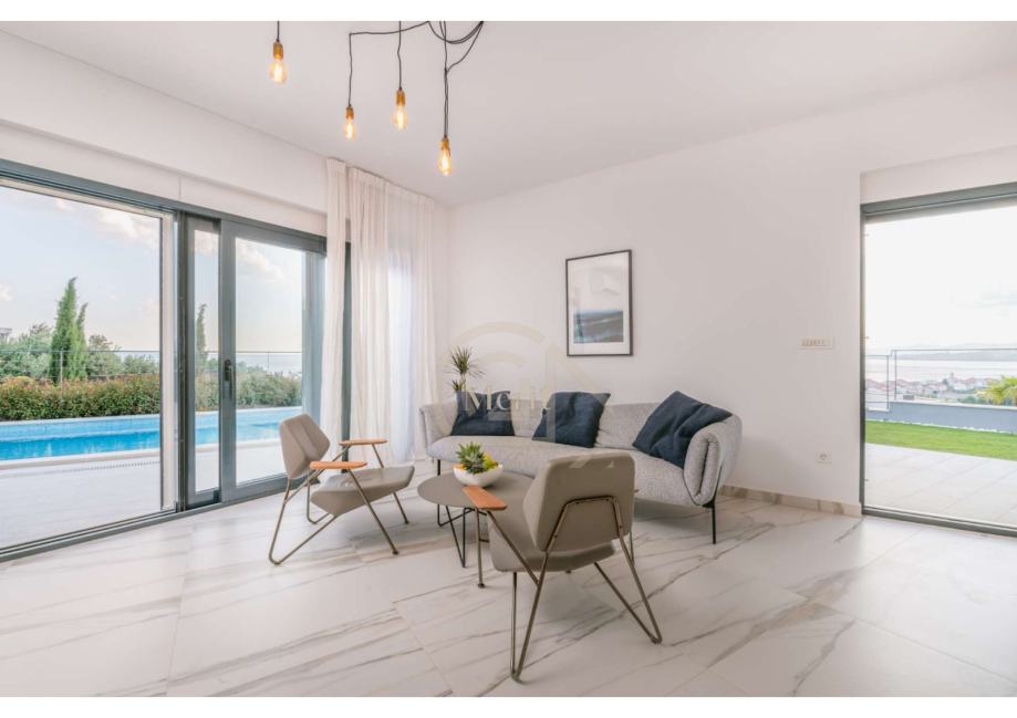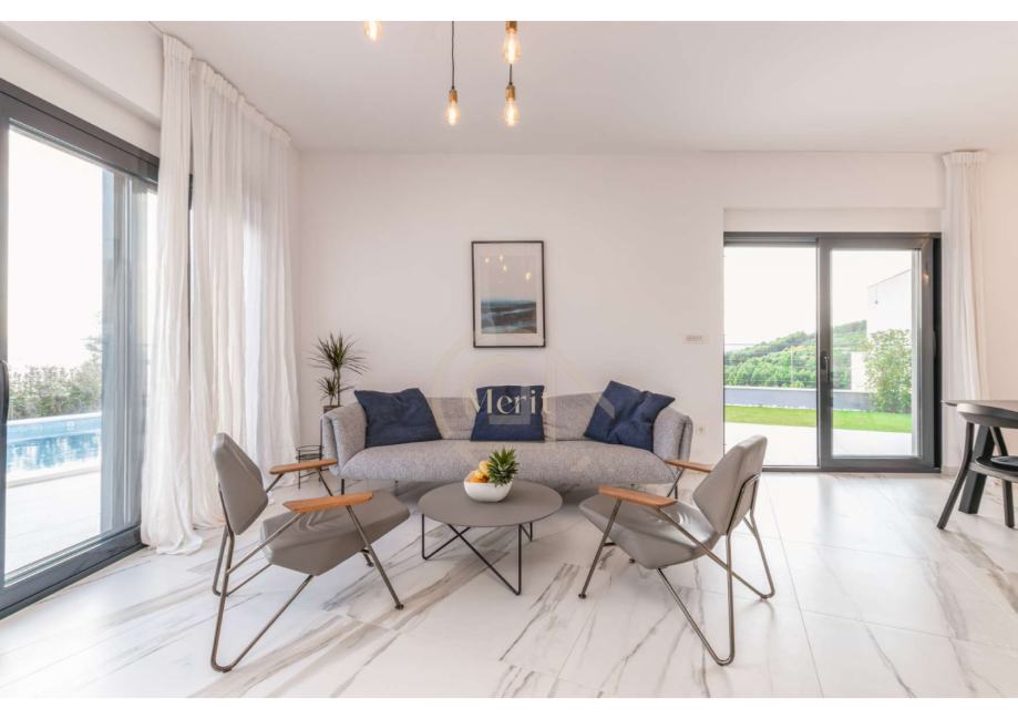 - Dnevni boravak otvorenog koncepta s izravnim izlazom na terasu i bazen