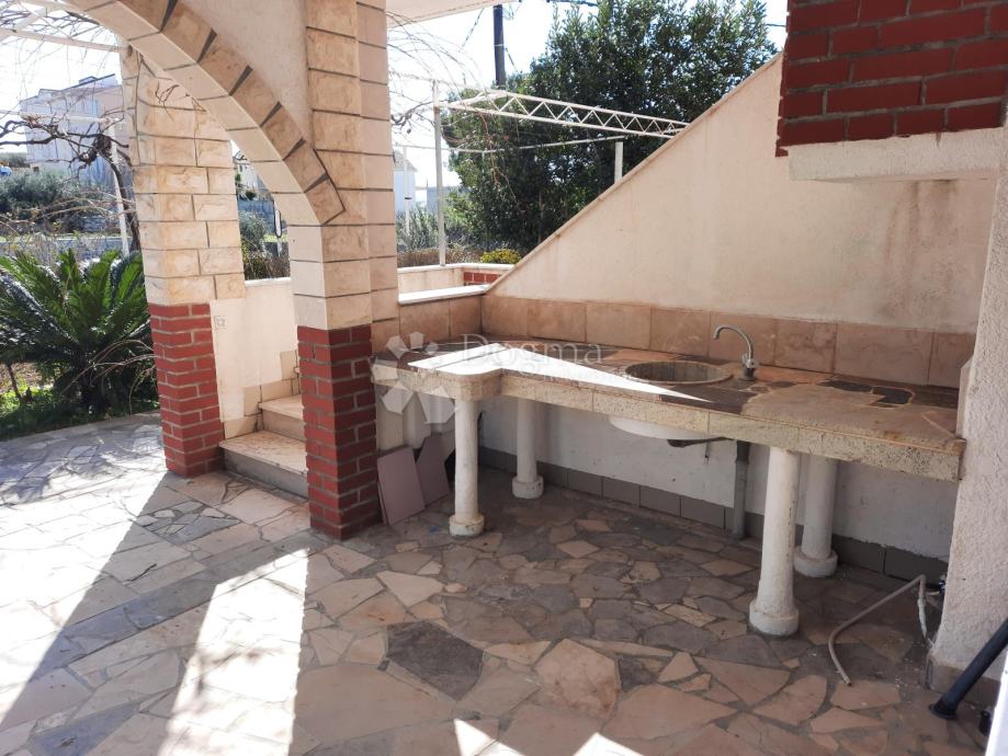 Ova kuća ne samo da je pozicionirana na odličnoj lokaciji, već nudi i nevjerojatan panoramski pogled na more iz svakog dijela kuće, obogaćujući svaki trenutak proveden u njoj. S ukupnom okućnicom od 550m2, uključujući predivan bazen i roštilj, pruža se mogućnost uživanja u vanjskim aktivnostima i druženju s obitelji i prijateljima.