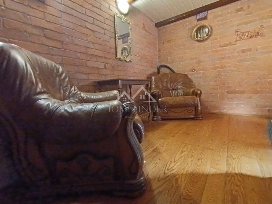-jedinstvena rustikalna soba – vinski kutak s drvenim gredama i kožnim foteljama – idealan za opuštanje i druženje