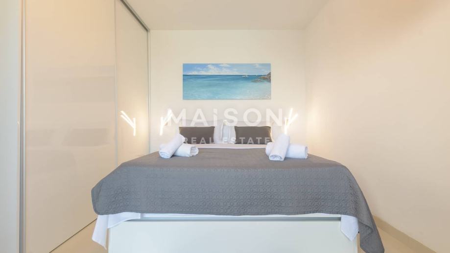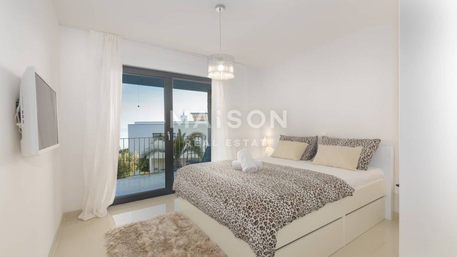 Na drugom katu nalazi se glavna spavaća soba s vlastitom kupaonicom i izlazom na prostranu terasu s infinity bazenom, s kojeg se pruža zadivljujući, neometan pogled na more i okolinu.