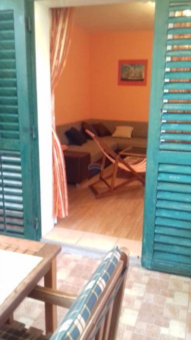 Prizemlje se sastoji od ulaznog hodnika u kojemu je smještena mini kuhinja s hladnjakom i kuhalom, velike sobe ispred koje se nalazi terasa, male spavaće sobe i kupaonice.