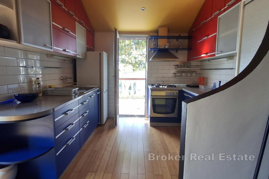 Veliko zemljište pruža privatnost, mogućnost uređenja vrta, bazena ili dodatnih sadržaja, dok blizina mora i pogled na plavetnilo čine ovu nekretninu izuzetno privlačnom.