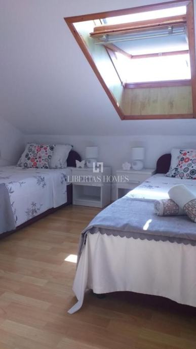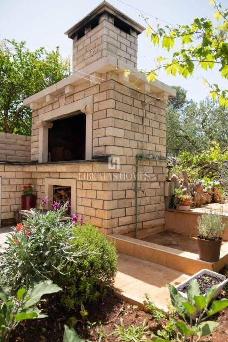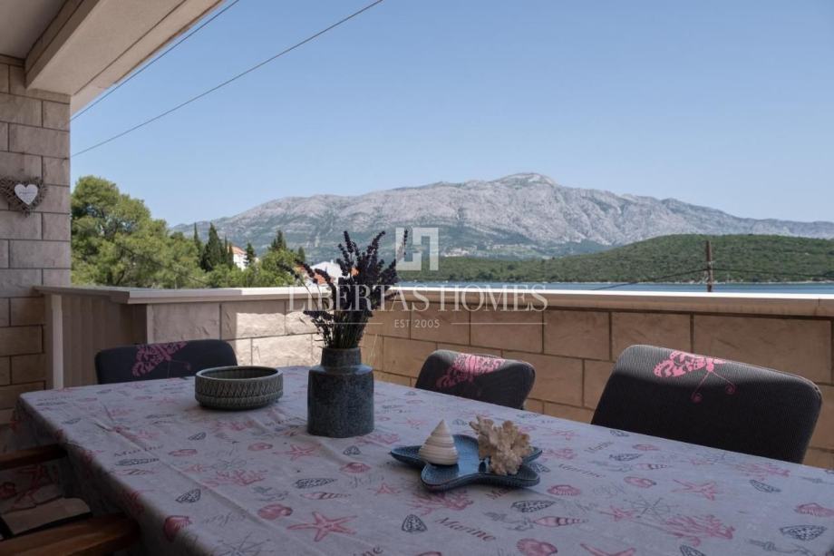 Smještena u elitnom i mirnom naselju grada Korčule pruža predivan pogled na more te okolne otočiće. Sastoji se od četiri stana ( suteren- 38m2, prizemlje- 86m2, kat- 77m2, potkrovlje- 38m2). Postoji mogućnost etažiranja stanova. Svaka etaža ima prostrane sobe s obiljem prirodnog svjetla, stvarajući toplu i ugodnu atmosferu. Ispred kuće je vrt i velika terasa s roštiljem. Kuća ima dva prostrana balkona te veliki parking, što olakšava svakodnevicu i omogućava siguran smještaj vozila.