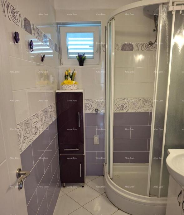 Kuća ima ukupno 77 m² stambenog prostora, raspoređenih na dvije etaže. Prvi apartman ima 32 m², dok drugi zauzima 44,91 m². Na raspolaganju su četiri spavaće sobe, dvije kupaonice, terasa, balkon s prekrasnim pogledom na more, vrt, atrij i natkriveno parkirno mjesto.