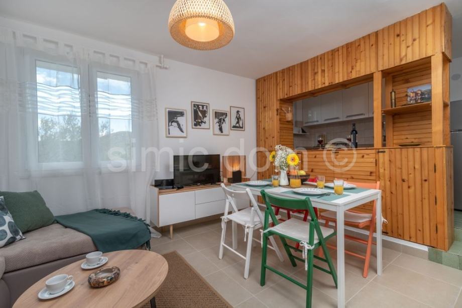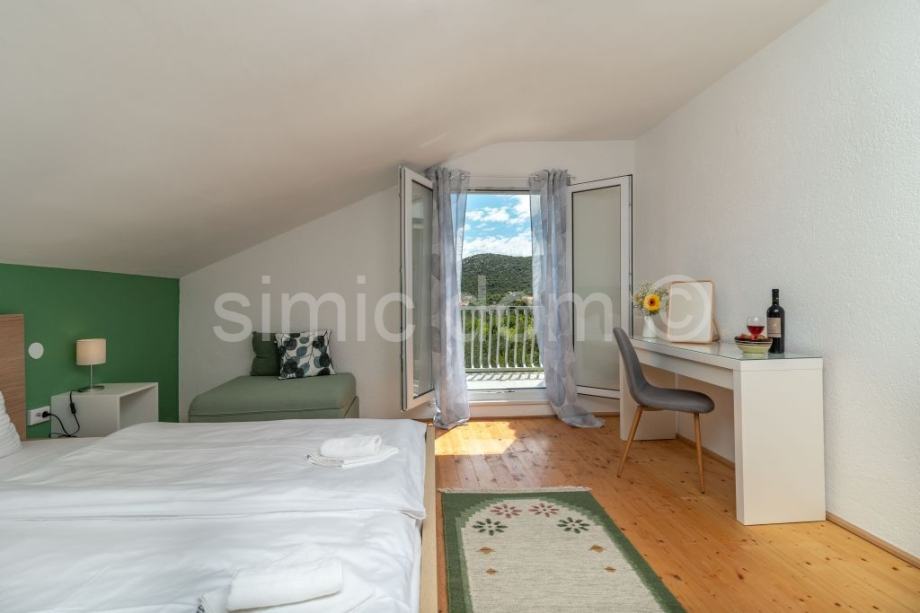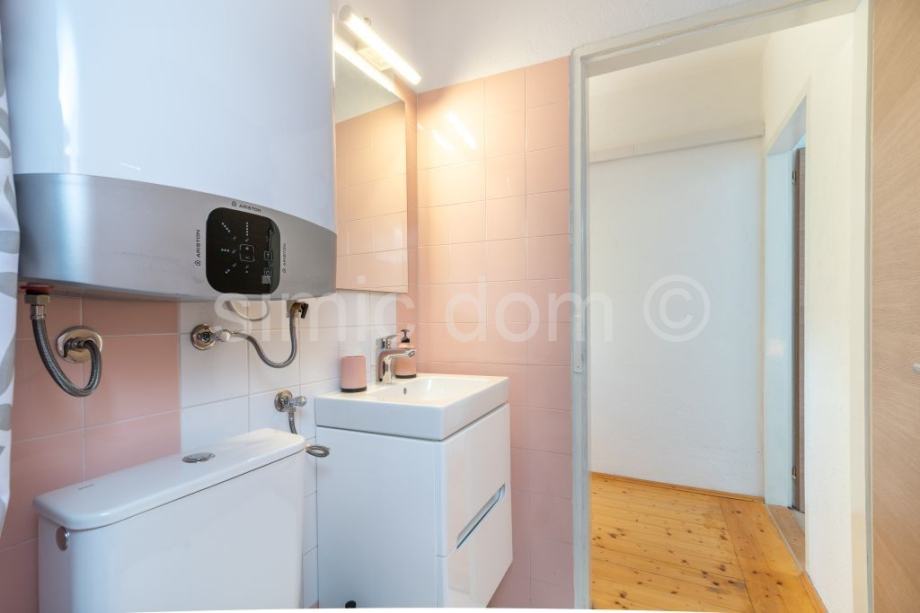 Posredujemo u prodaji prekrasne, vrlo šarmantne kuće na mirnoj lokaciji koja je nekoliko minuta šetnje od mora u Vinišću (600m do samog centra i mora). Kuća se prostire etažama prizemlja i prvog kata te ima neto površinu od 114,44m2. Unutarnji dio kuće nudi ulazni prostor, toalet te dnevniboravak s kuhinjom i ostavu (prizemlje), a na katu su hodnik, dvije spavaće sobe i kupaonica. Gornju razinu resi jako lijep balkon s pogledom na more i zelenilo, dok je na donjoj razini kuće dostupna prostrana terasa također u zelenilu, idealna za mirne ljetne večeri. Kuća se posebno diči uređenom i održavanom okućnicom prepunom raslinja koja nudi parkirni prostor, roštilj, masline… Kuća je temeljito renovirana 2019. (nova vanjska pvc stolarija s komarnicima i mobilnim škurama, nove podne obloge u dnevnom boravku, spavaćoj sobi i gornjoj terasi, nove sanitarije, nova unutarnja vrata, novi sustav klimatizacije) te predstavlja izvrsnu investiciju što za obiteljske potrebe, što za unosan posao najma. Kuća nudi izniman mir i privatnost, a što u kombinaciji s lijepim pogledom i zavidnim stanjem nekretnine jamči visoku iskoristivost nekretnine. Vlasništvo uredno.