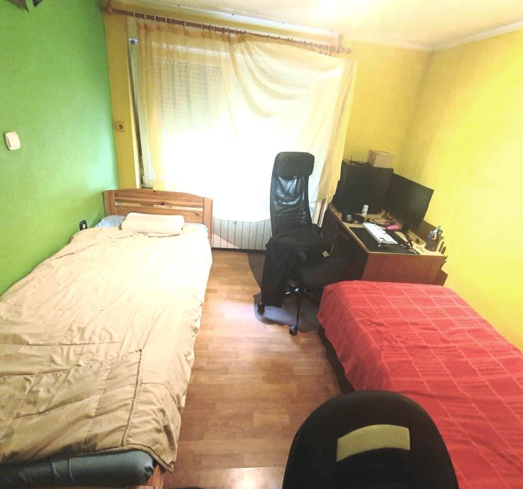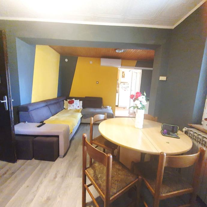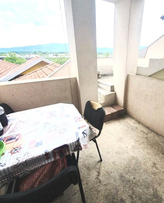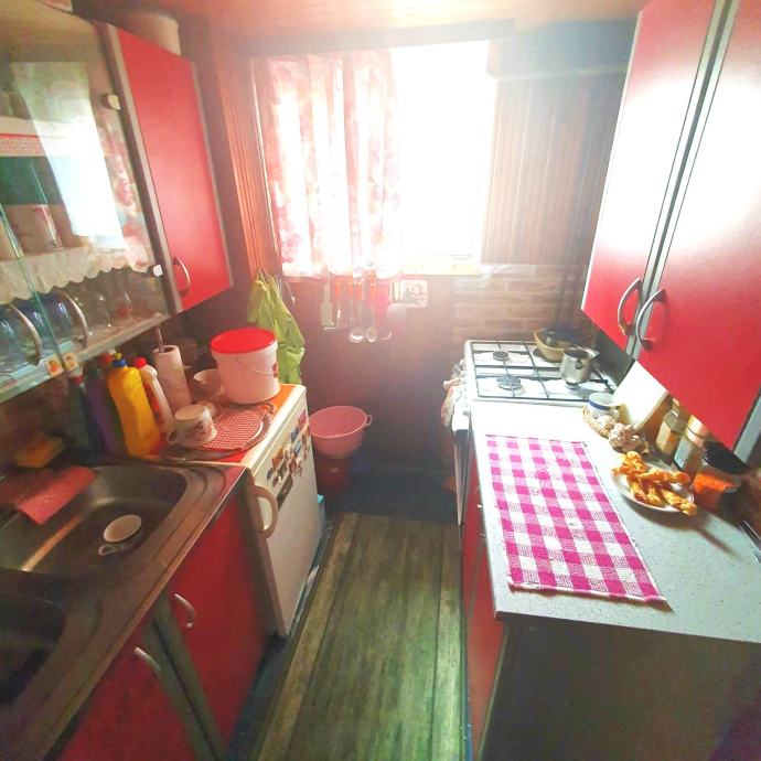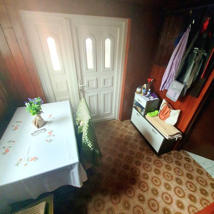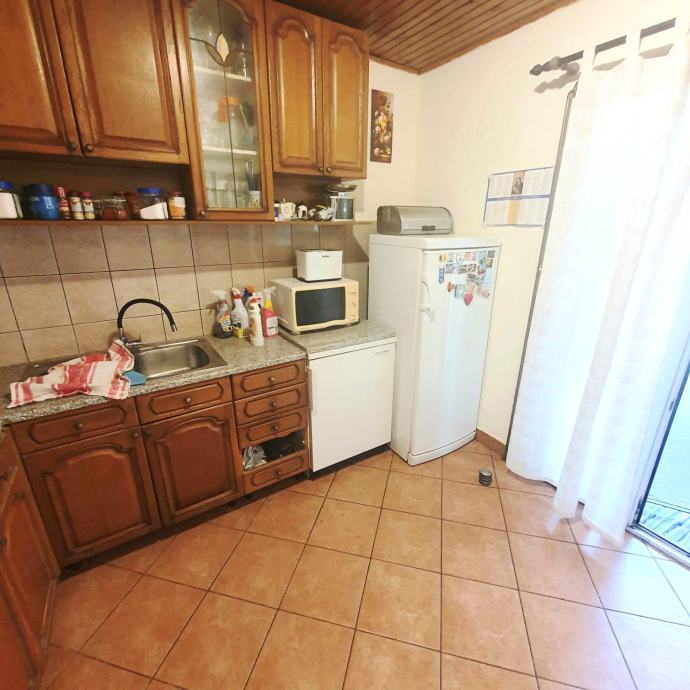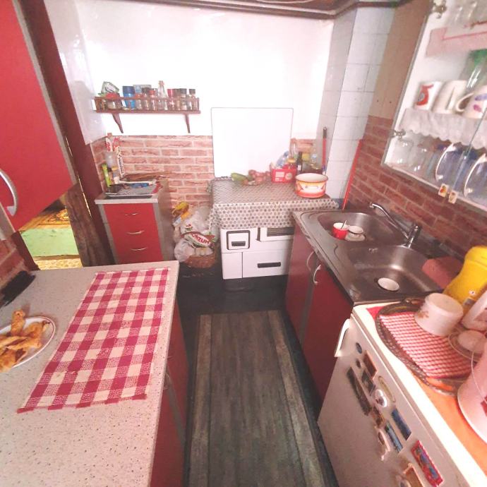 kuhinja s koje se izlazi na terasu, dvije spavaće sobe i kupaonica s wc-om.