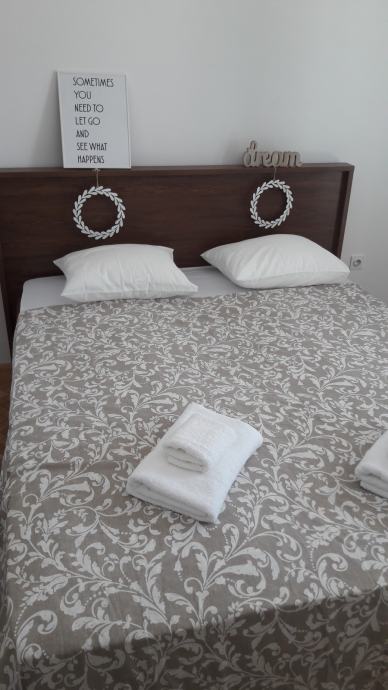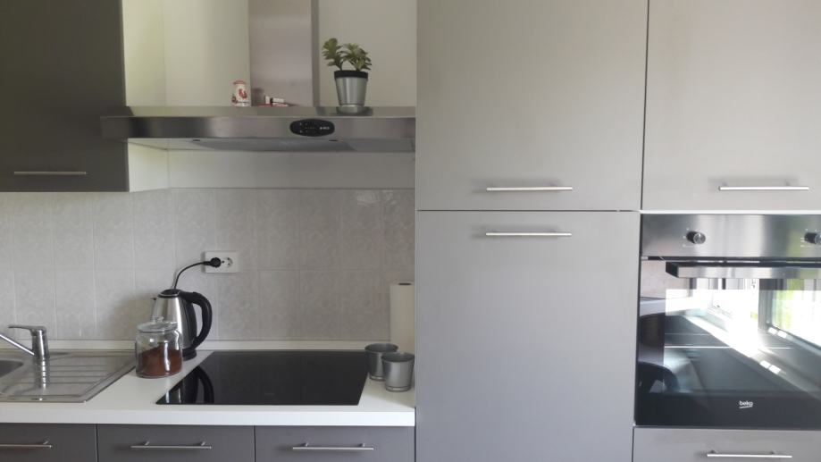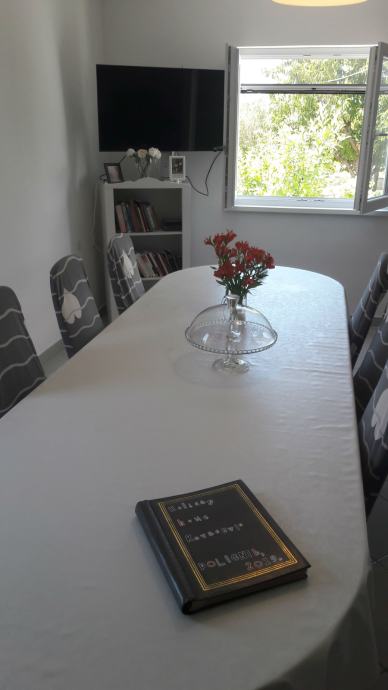 Potpuno uređena kuća, prizemlje i kat sa ukupno pet spavaćih soba (3-bračni krevet, 1-sa dva kreveta za osobu i 1-sa krevetom za osobu), velikim dnevnim boravkom, kuhinjom i blagovaonom, dva kupatila. Grijanje je na klimu, radijatore i jedna peć na drva.