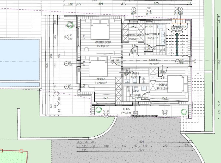 Vila će biti izgrađena na parceli od 603 m², s ukupnom neto površinom od 260 m² stambenog prostora raspoređenog na dvije etaže, garaza ina 4 parkirnih mjesta i podrum. Projekt predviđa tri prostrane spavaće sobe, svaku s vlastitom kupaonicom na drugom katu, moderan dnevni boravak s izlazom na terasu te privatni bazen.