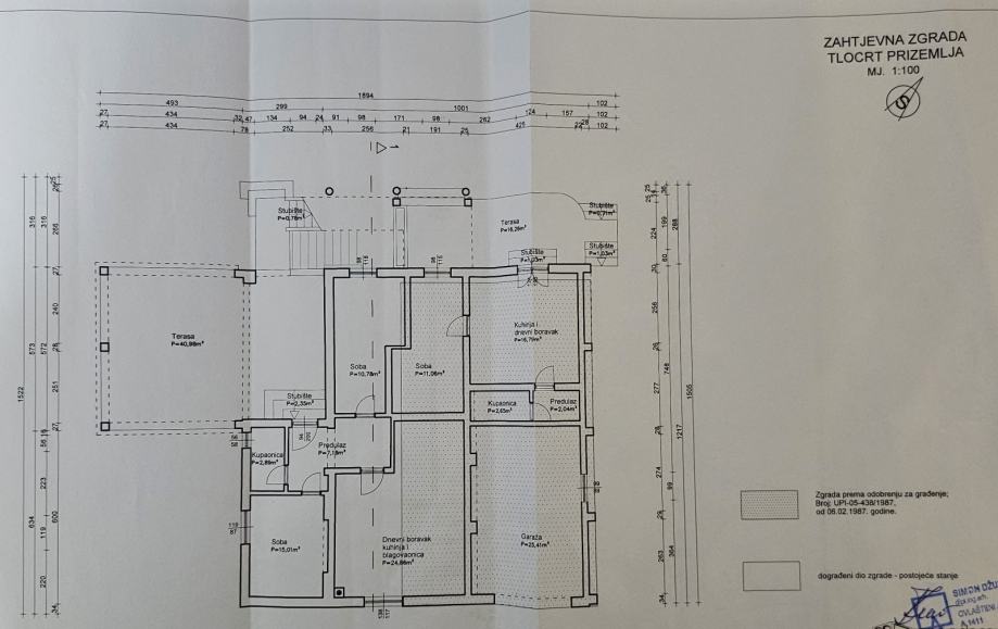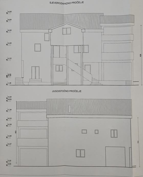 2. kat ( potkrovlje ):jednosoban stan površine 40 m2 s terasom od 27 m2, te 3 jednosobna apartmana u roh bau stanju.