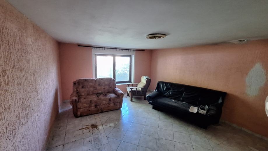 Nekretnina se nalazi u mirnom naselju, okružena je drugim obiteljskim kućama, a prilaz je omogućen s ulične prometnice. Zidovi su ožbukani i obojeni, kupaonica i kuhinja obložene su keramičkim pločicama dok su sobe obložene betonom i cementnom glazurom. Unutarnja i vanjska stolarija je drvena. Parkiranje je moguće u garaži u sklopu objekta te u dvorištu.
