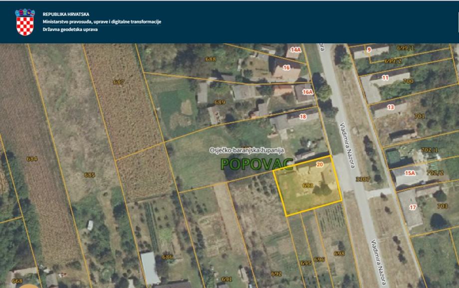 Prodaje se kuća prizemnica s dvorištem, u Popovcu na adresi Vladimira Nazora 20, ukupne površine 1040 m2.