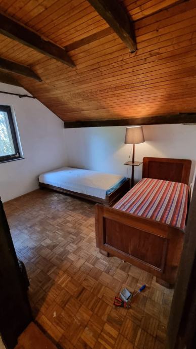 Na katu kuće nalazi se po jedna spavaća soba, svaka površine 16 m². Jedna soba ima bračni krevet, kamin na drva, ugradbeni ormar, izlaz na veliku terasu od skoro 10m² i ogroman prozor kroz koji se iz kreveta pruža prekrasan pogled na vinograde. Druga soba ima 3 kreveta i dimnjak, tako da je i u nju moguće postaviti kamin.