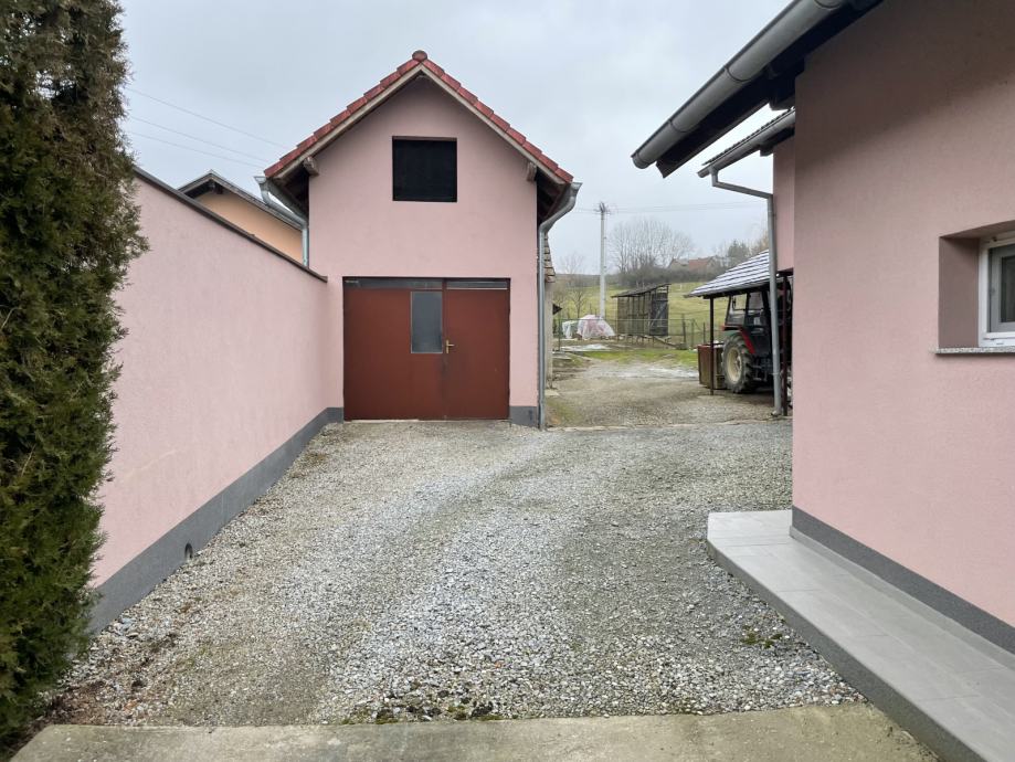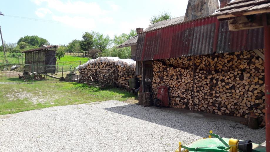 Dvije garaže. Nadstrešnica za traktor, staja i svinjac s pojilicama, kokošinjac.