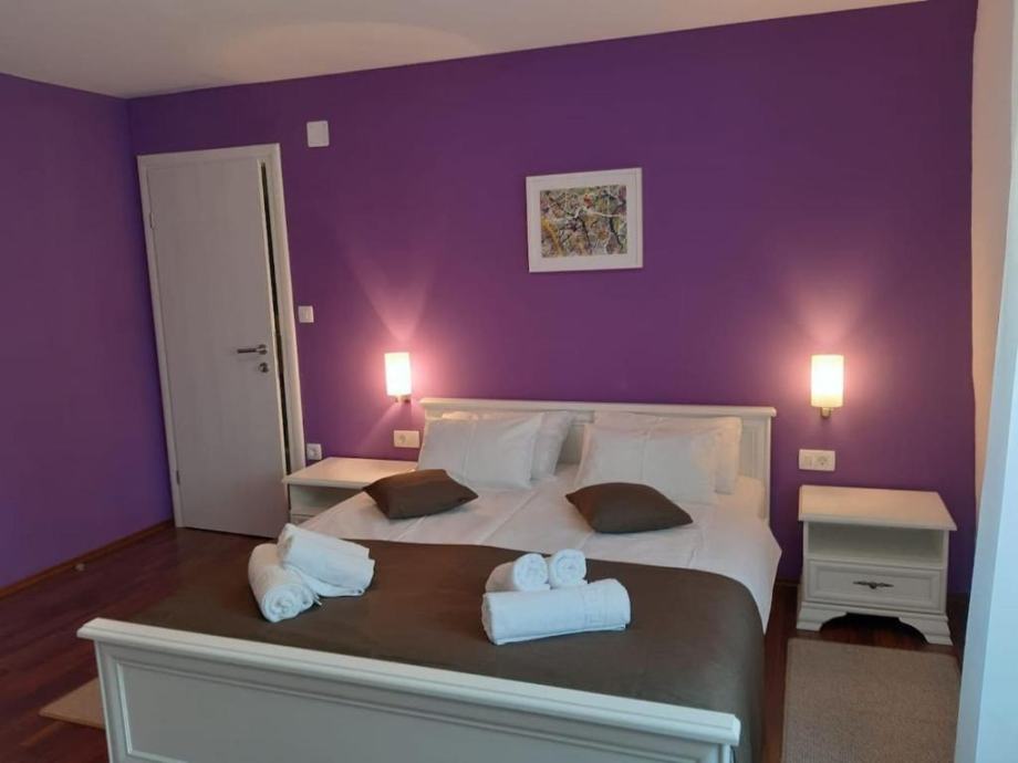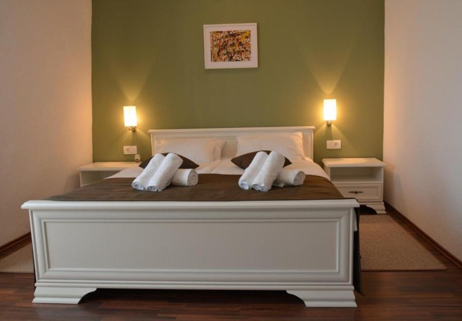 Drvene stepenice koje vode na prvi kat smještene su dvije spavaće sobe s pogledom na zelenilo,kupaonica.
