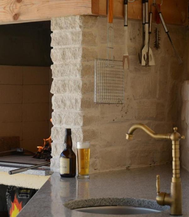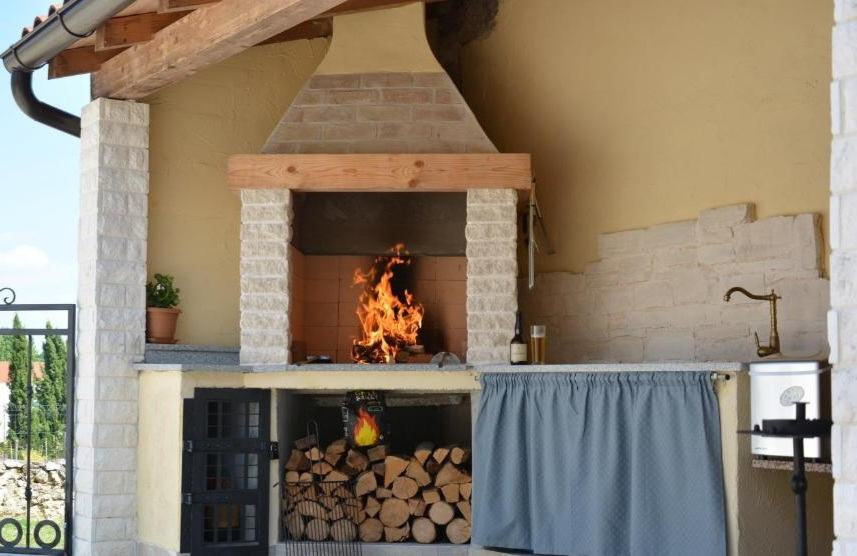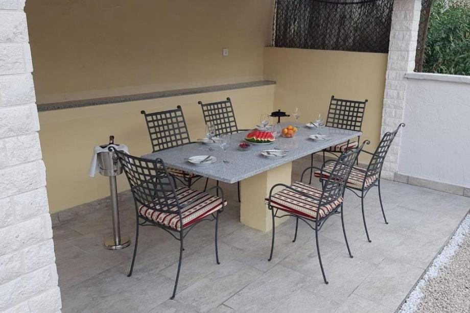 S prizemlja imate direktan izlaz na uređenu okućnicu s vanjskim kaminom i natkrivenom terasom površine 60 m2.