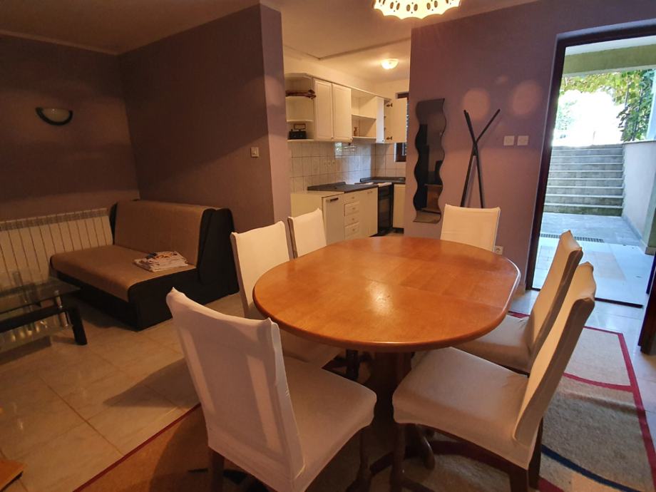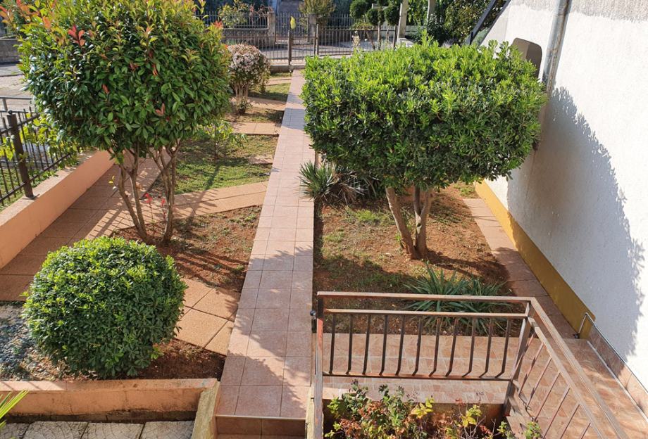 Na prvom katu se nalazi dnevni dio : hodnik, kupatilo, spremište, kuhinjska niša , trpezarija , dnevni boravak i terase .