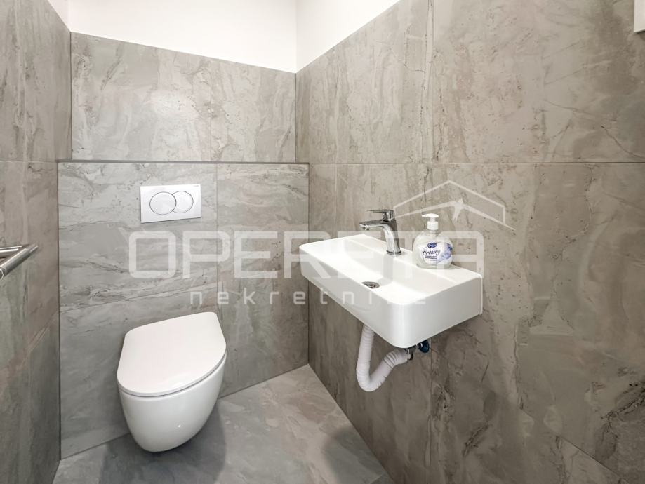 U prizemlju se nalazi moderno uređen poslovni prostor površine 70 m², s velikim izlozima prema ulici i vlastitim ulazom. Prostor je u potpunosti renoviran i opremljen svim potrebnim priključcima, što ga čini savršenim za različite namjene – od ureda, salona, ordinacije do trgovine. Zahvaljujući izloženosti i lakoći pristupa, predstavlja idealnu opciju za pokretanje vlastitog posla ili dugoročan najam.